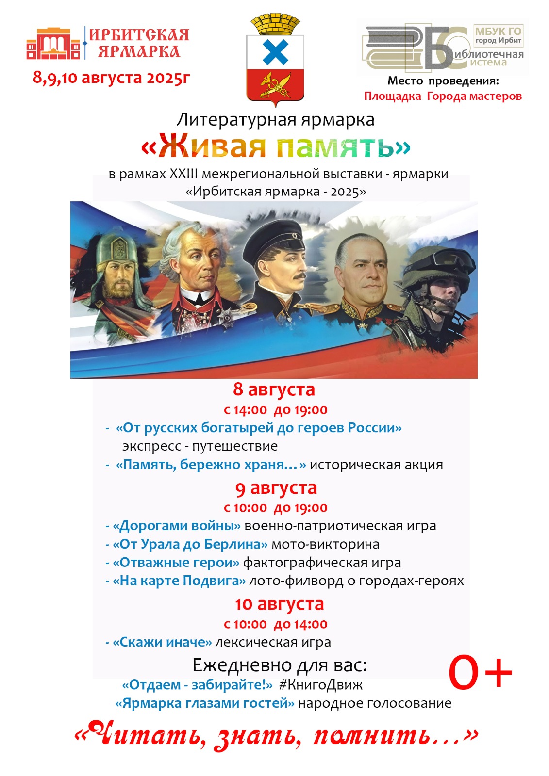 10.00 – 14.00 - «Живая память» - литературная ярмарка (площадь им. В.И. Ленина)