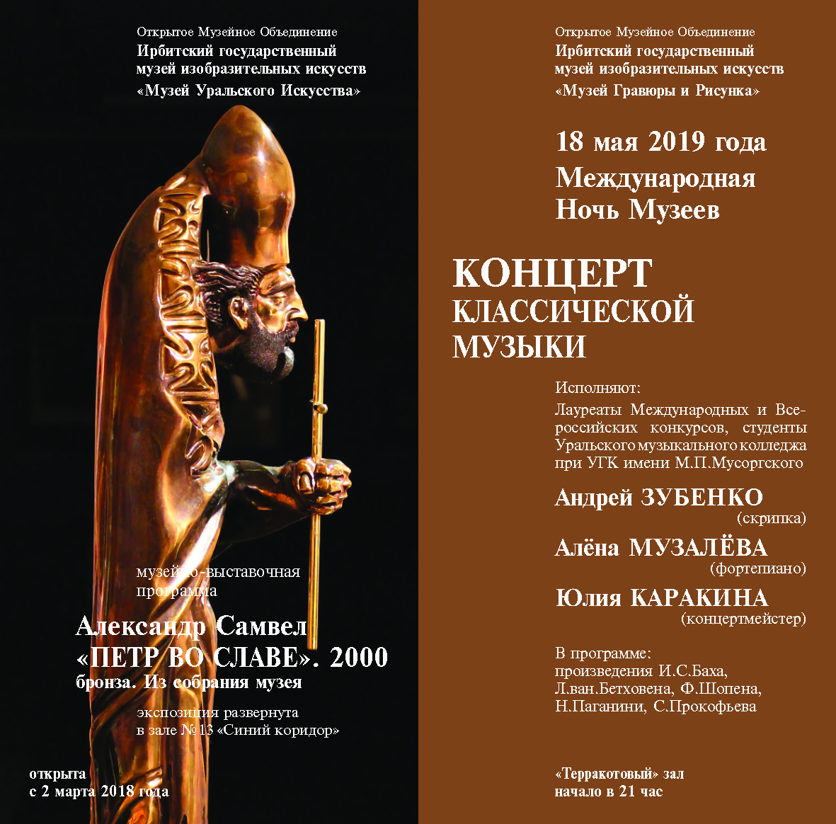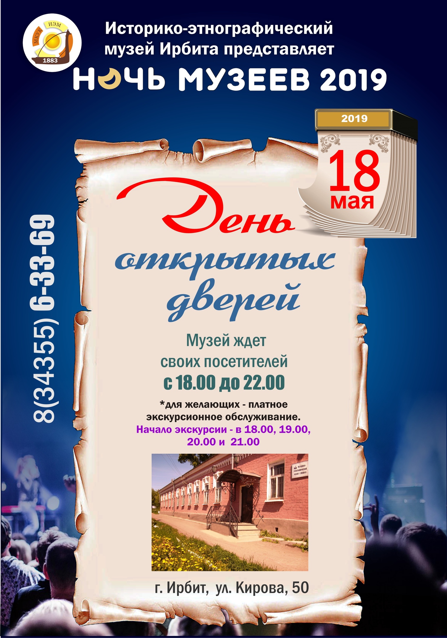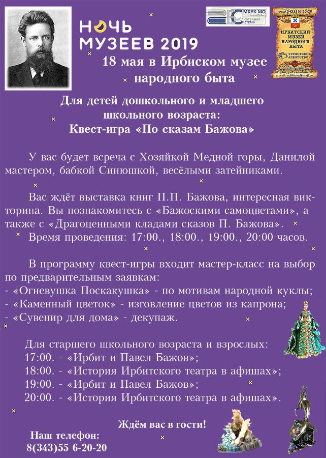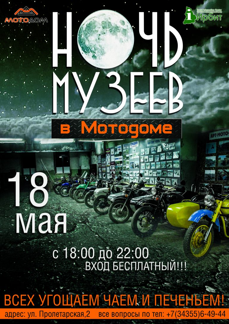Администратор, 17 мая, 2019 Завтра, 18 мая 2019 г., в Ирбите пройдет Ночь музеев 2019. Организация Центр мотокультуры (Мотодом) Ирбитский музей народного быта Ирбитский государственный музей мотоциклов Ирбитский историко-этнографический музей (первое здание) Ирбитский историко-этнографический музей (второе здание) Музей Гравюры и Рисунка (Ирбитский ГМИИ) Музей Уральского Искусства (Ирбитский ГМИИ) Рубрика Культура Теги Ночь музеев 194 просмотра