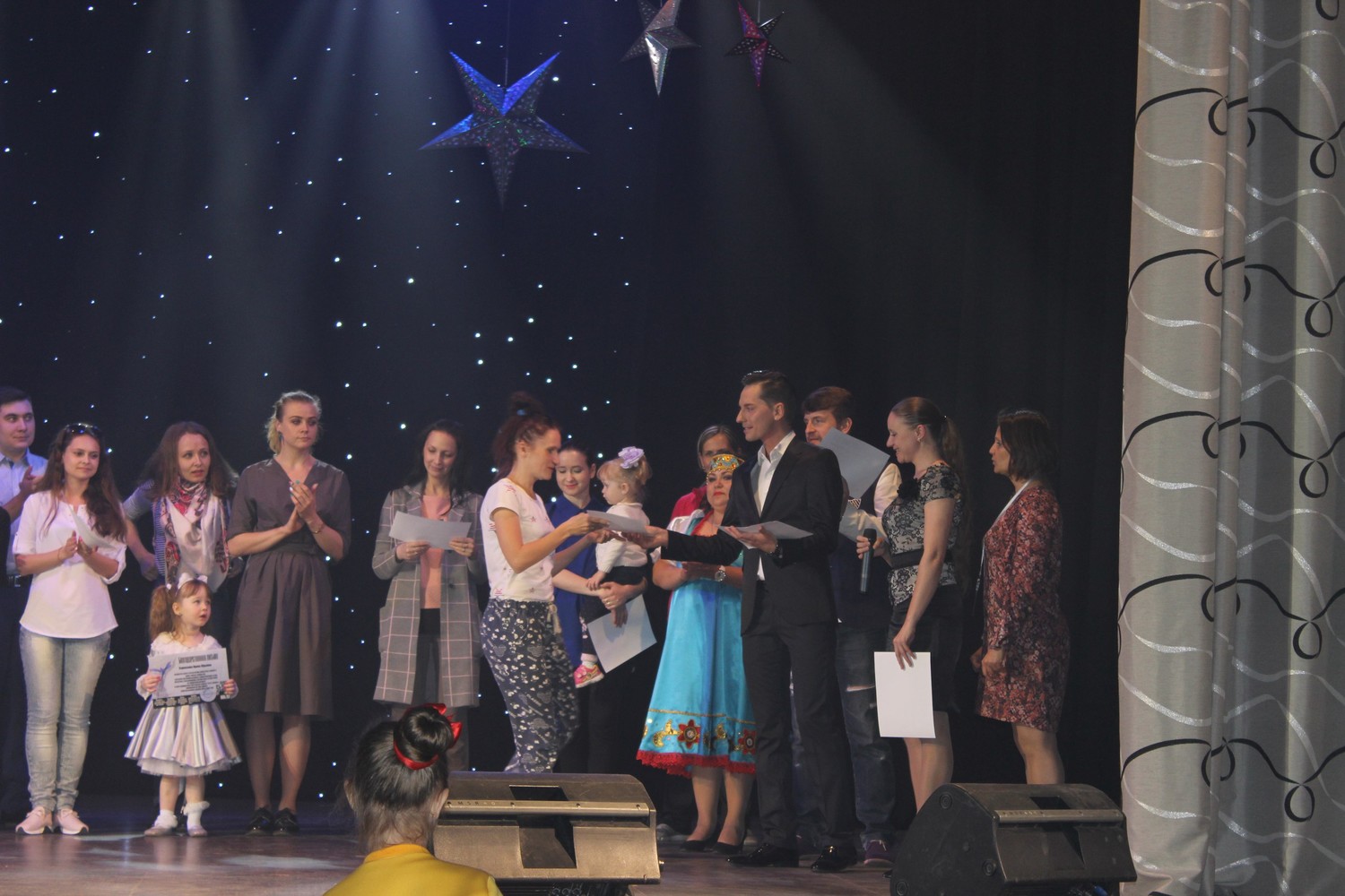 Ренат Хасбатов, вручал нашим ребяткам долгожданную награду: диплом и кубок за великолепную демонстрацию конкурсных номеров. За номер «Гуси» – диплом дипломанта II степени, за номер «Армия» – диплом лауреата II степени!!! Восторгу ребят и родителей не было предела. Еще для ребят на гала-концерте выступали члены жюри, что тоже было подарком.