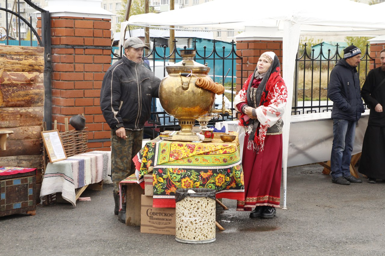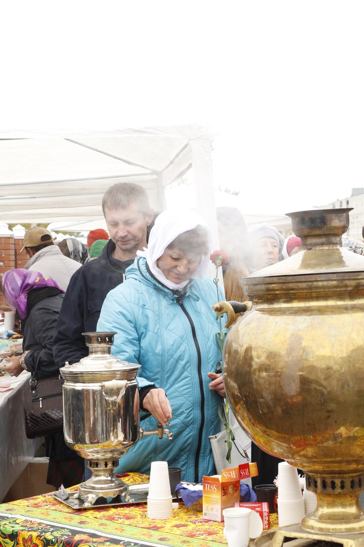 Во время праздничного гулянья прихожане с большим удовольствием пили травяной чай из большого самовара из коллекции ирбитского предпринимателя и мецената Михаила Смердова, а также угощались сластями и выпечкой, которые заботливо принесли хозяйки.