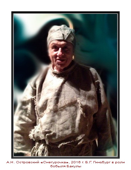 - А.Н. Островский «Снегурочка», роль бобыля Бакулы.