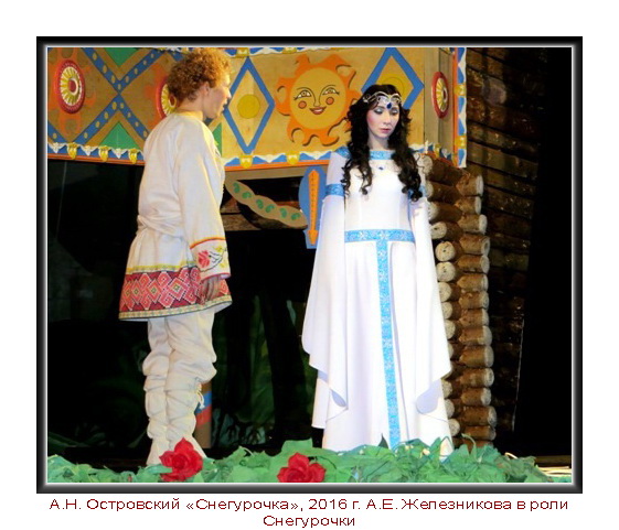 - А.Н. Островский «Снегурочка», роль Снегурочки.