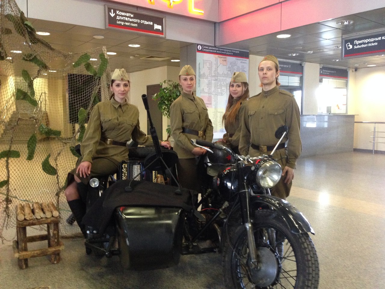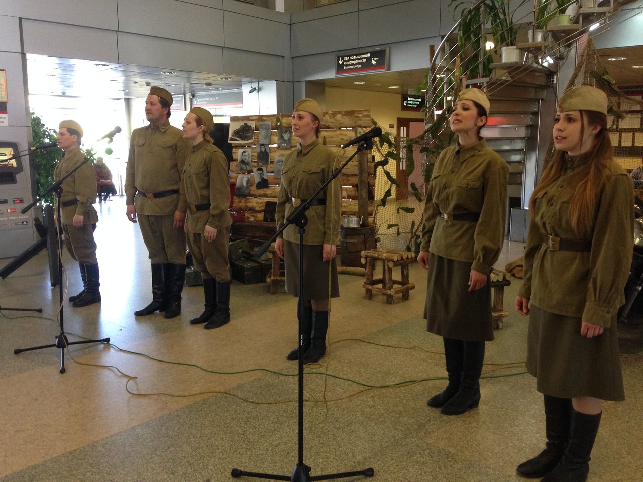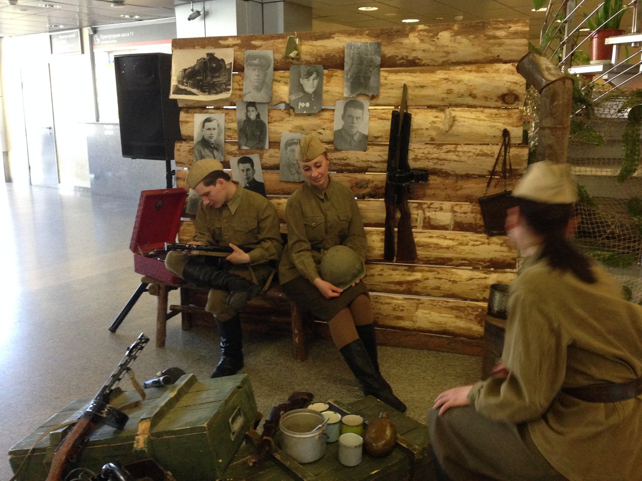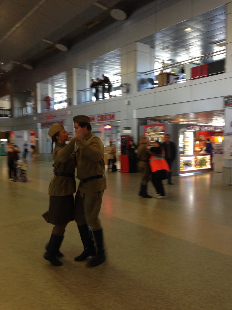 В преддверии Дня Победы артисты Ирбитского драматического театра организовали флеш-моб в здании вокзала Тюмени. Три часа наши артисты пели военные песни и танцевали.