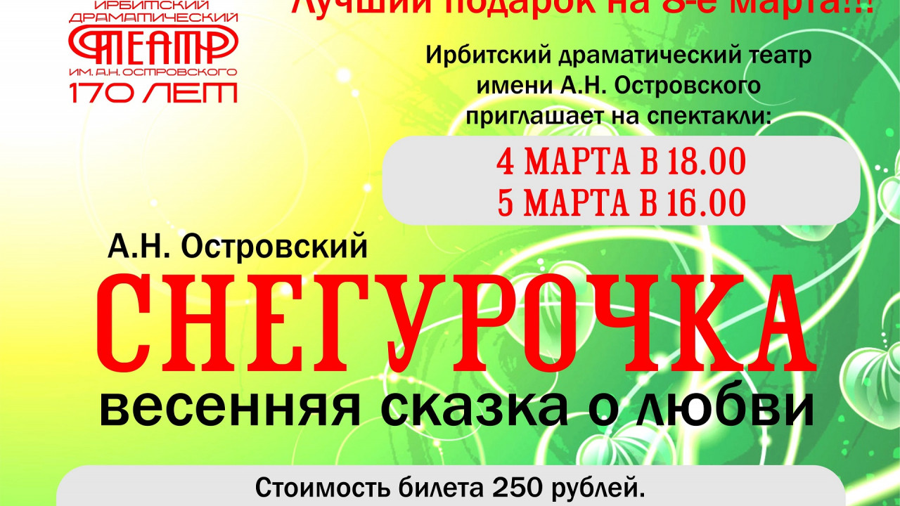 Весенняя сказка продолжается!!! Уже более 700 ирбитчан приняли участие в праздновании 170-летия Ирбитского драматического театра и посмотрели весеннюю сказку "Снегурочка" А.Н. Островского.