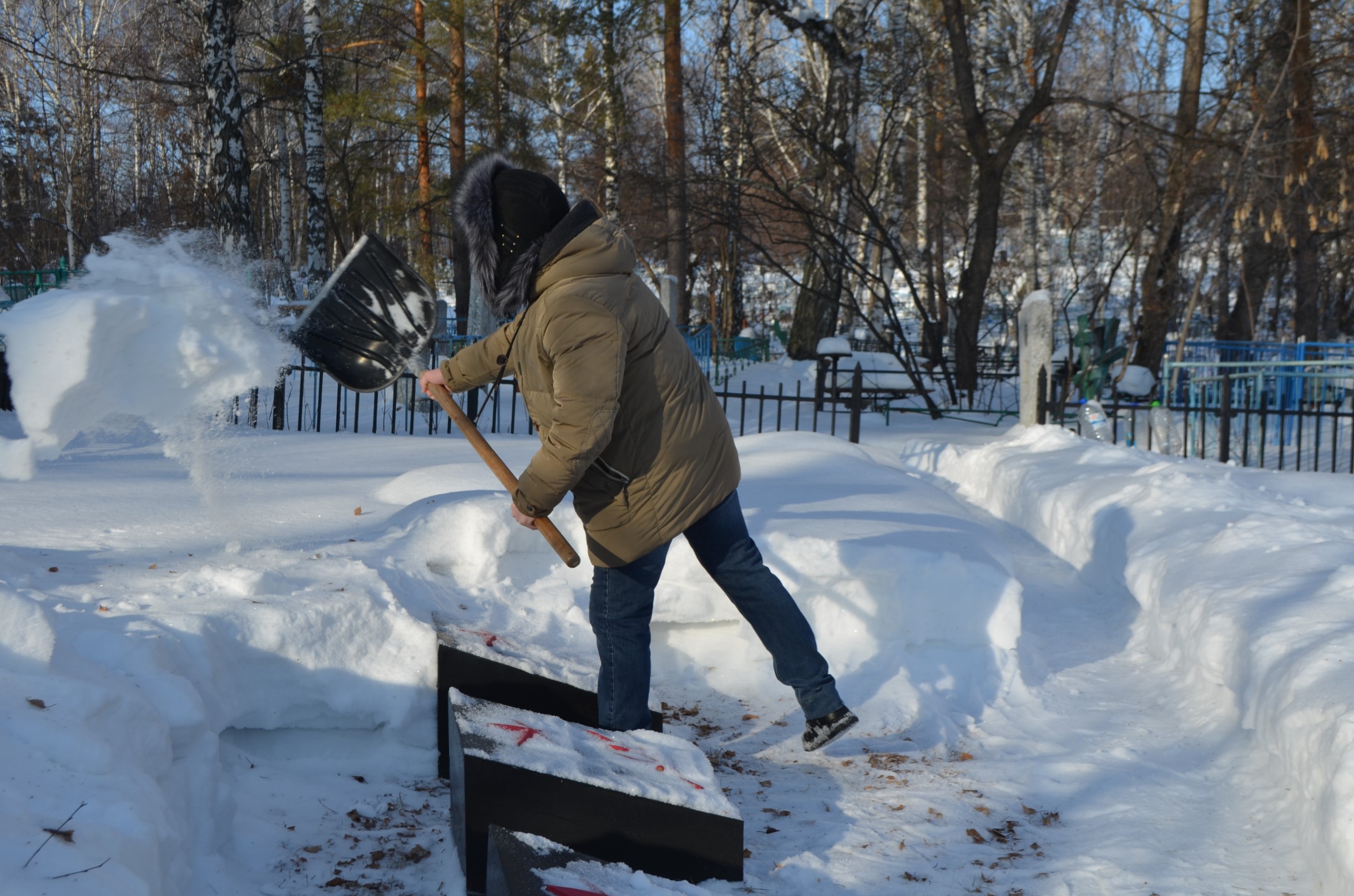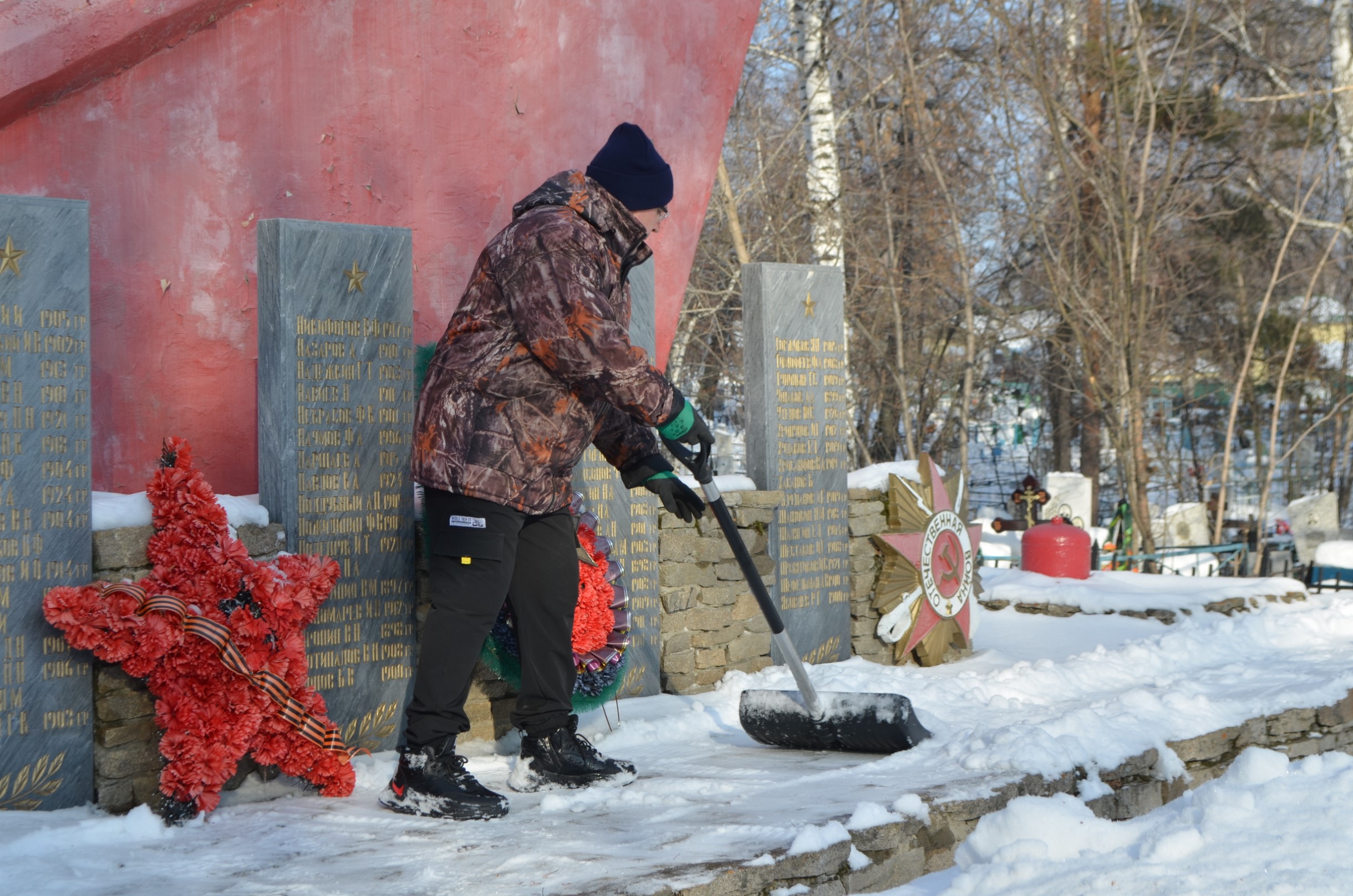 В рамках месячника Защитника Отечества сотрудники полиции, представители Общественного совета при МО МВД России «Ирбитский» и волонтеры Центра молодежи г.Ирбита приняли участие в очистке от снега обелиска воинам советской армии, умершим в госпиталях города Ирбита в годы Великой Отечественной войны. Памятник за зиму замело снегом, но участники акции взялись за лопаты и очистили часть территории.