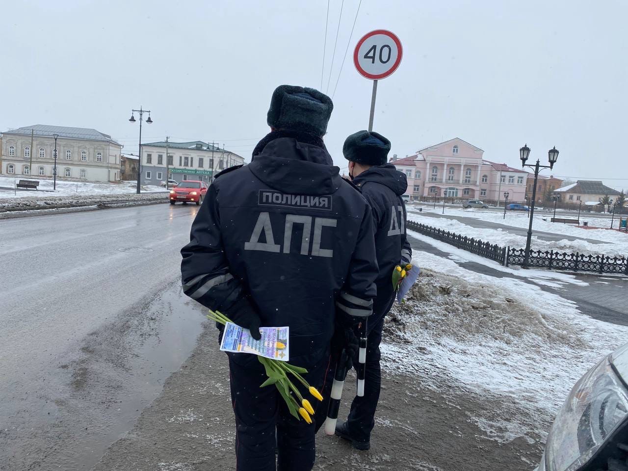 На одной из улиц города полицейские поздравляли с наступающим праздником женщин-водителей и желали им весеннего тепла, прекрасного настроения, семейного благополучия и, конечно же, безопасных дорог. Вместе с искренними пожеланиями каждая автоледи получила яркий весенний букет тюльпанов. Автолюбительницы были приятно удивлены такому вниманию, они поблагодарили дорожных полицейских за подаренное весеннее настроение и пообещали всегда быть внимательными и осторожными на дорогах.