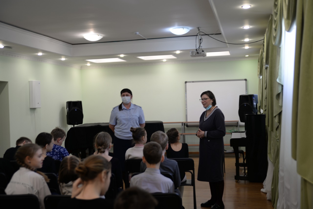 Перед началом весенних каникул, на встречу с инспектором по пропаганде БДД Татьяной Бердюгиной собралось более 40 ребят с разных направлений «Ирбитской районной детской школы искусств».
