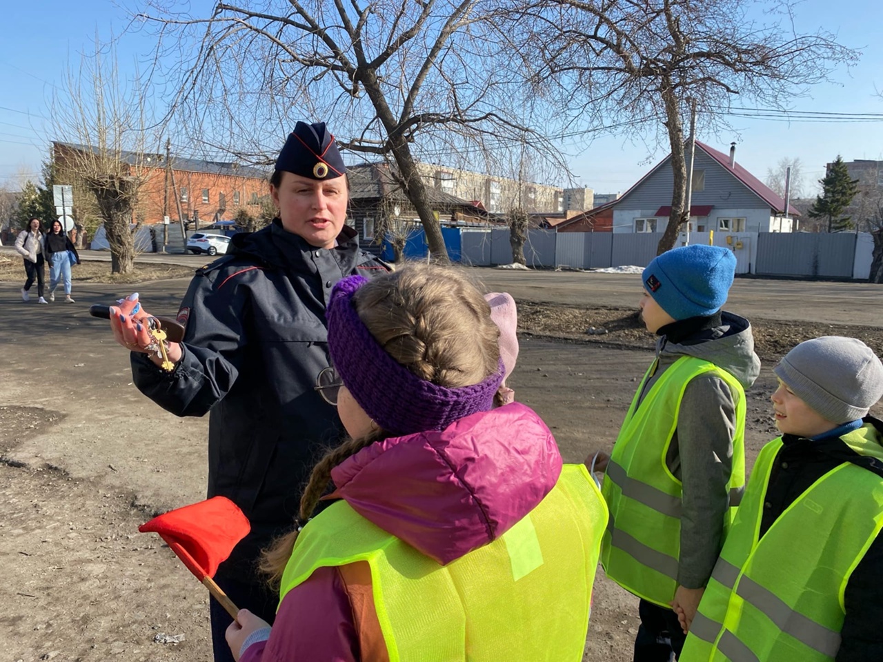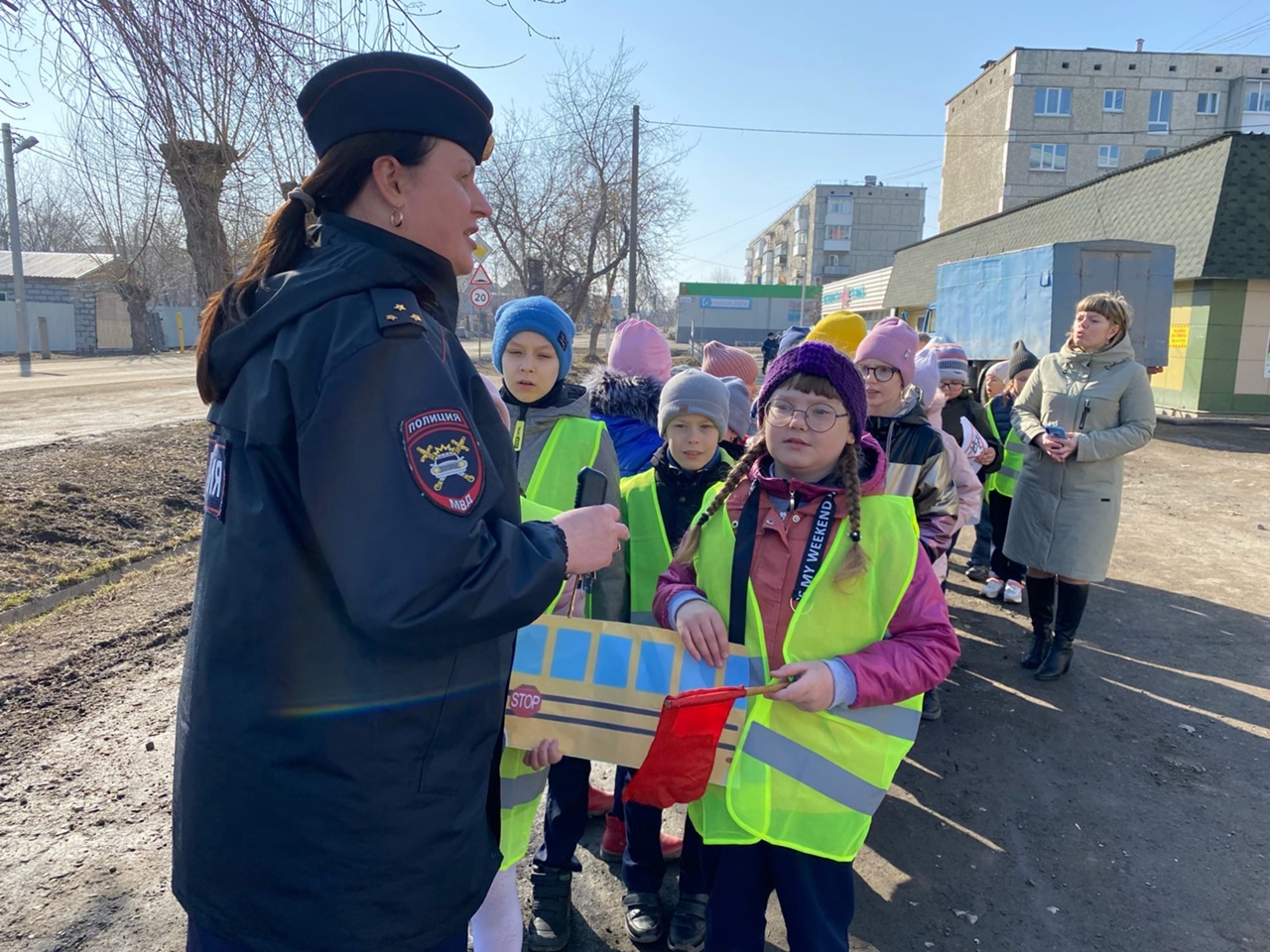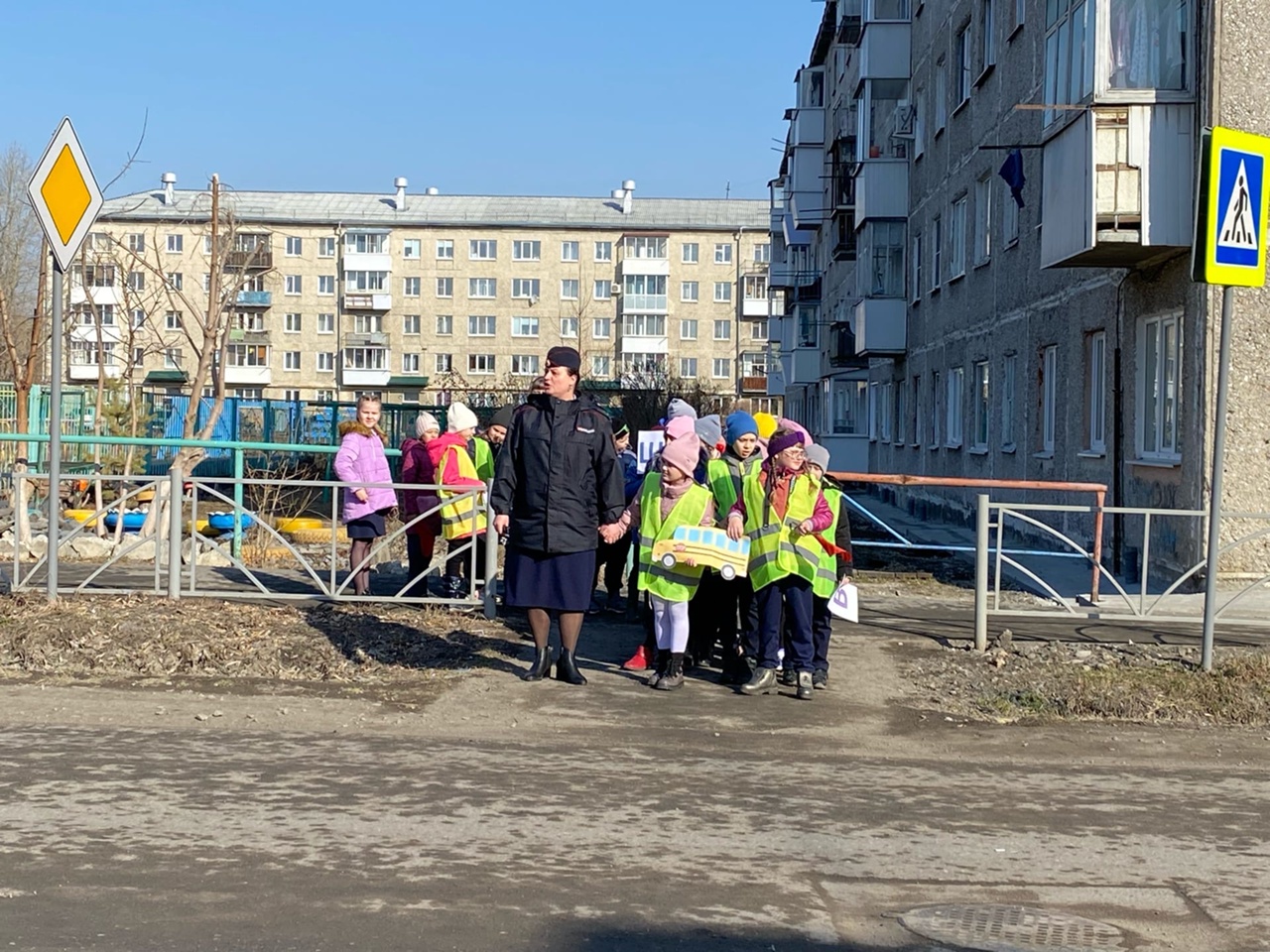 Накануне инспектор по пропаганде БДД ОГИБДД МО МВД России «Ирбитский» старший лейтенант полиции Татьяна Бердюгина с ребятами из школы №13 города Ирбита прошли по улицам города и повторили правила дорожного движения. Маршрут «Шагающего автобуса» проходил через перекрестки и «зебры», а также дворы, где пешеходов могут подстерегать «дорожные ловушки» - ситуации мнимой безопасности. На каждом участке инспектор инструктировала детей и давала рекомендации, как правильно оценить дорожную обстановку и убедиться, что переход дороги безопасен, и чем опасен неожиданный выход на дорогу из-за препятствия.