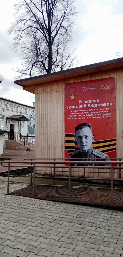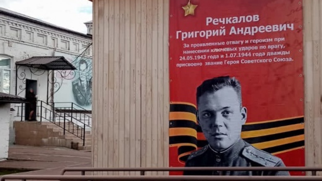 Дважды Герой Советского Союза РЕЧКАЛОВ Григорий Андреевич. Баннер у Культурного центра имени дважды Героя Советского Союза.