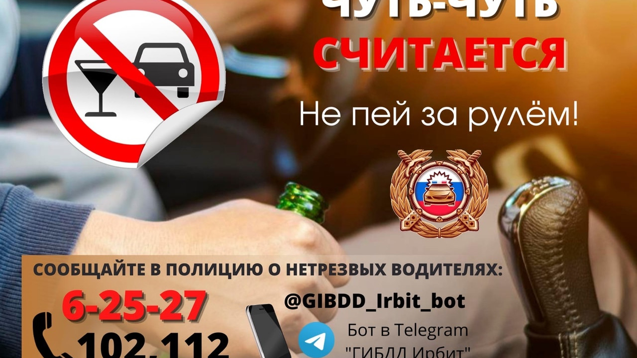 Не оставайтесь равнодушными к проблеме пьянства за рулём, своевременно информируйте полицию о водителях, которые ведут себя на дороге неадекватно. Сообщить о фактах управления водителями транспортных средств в состоянии опьянения можно ближайшим экипажам ДПС или по телефону дежурной части полиции 8 (34355) 6-25-27, пользователи мессенджера «Телеграмм» могут сообщить о правонарушении, оставив анонимное сообщение в специальном боте «ГИБДД Ирбит».