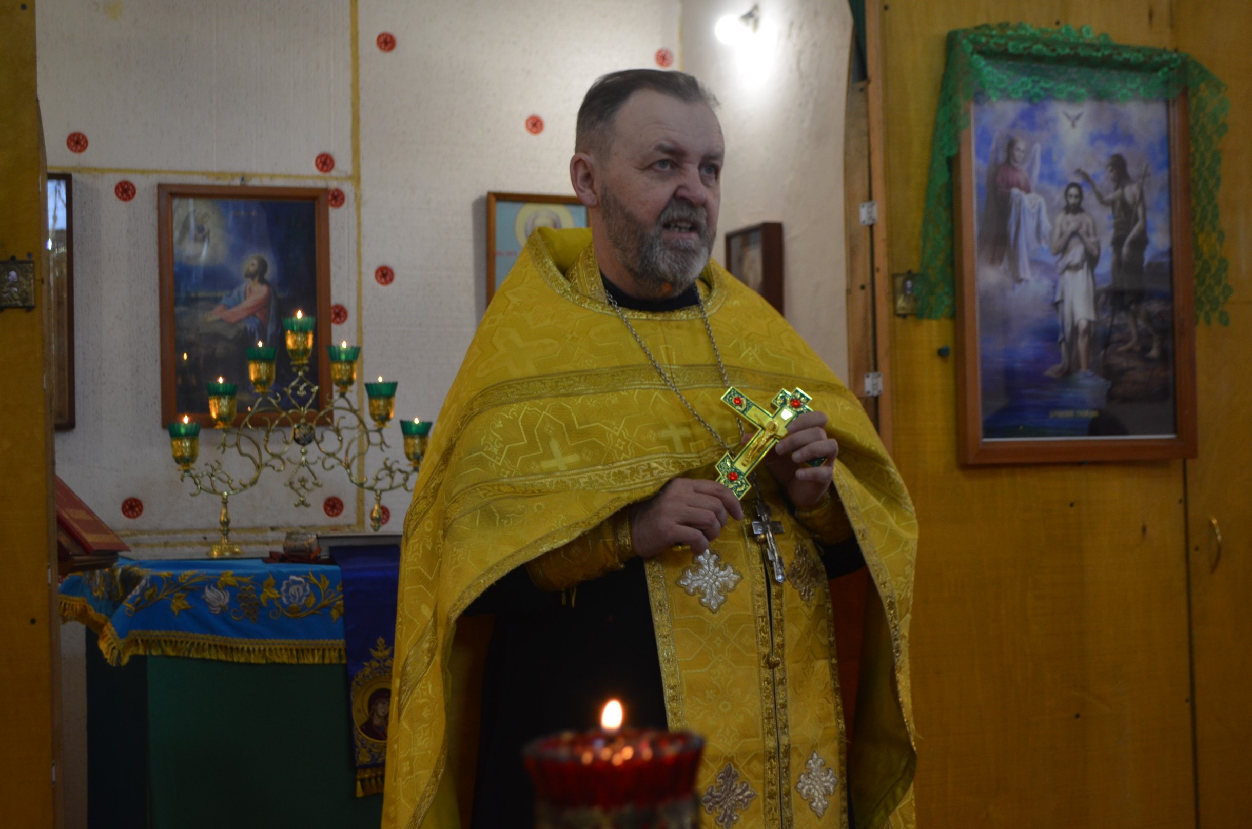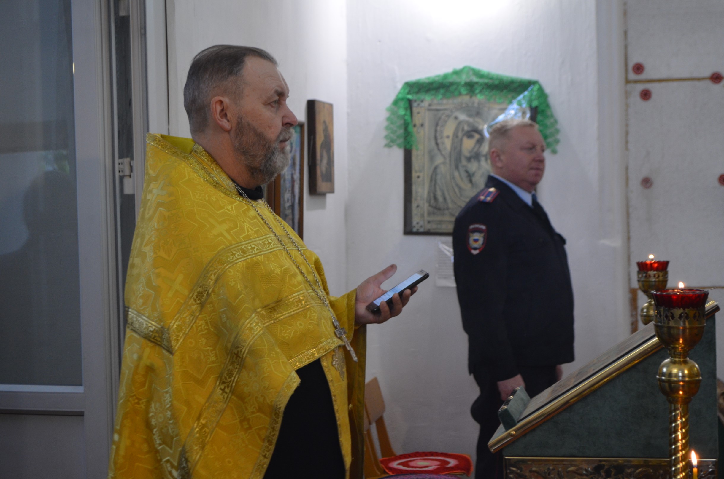 По завершению панихиды, Андрей Кяйс в честь наступающего Дня сотрудника органов внутренних дел поздравил присутствующих с праздником и исполнил несколько патриотических песен.