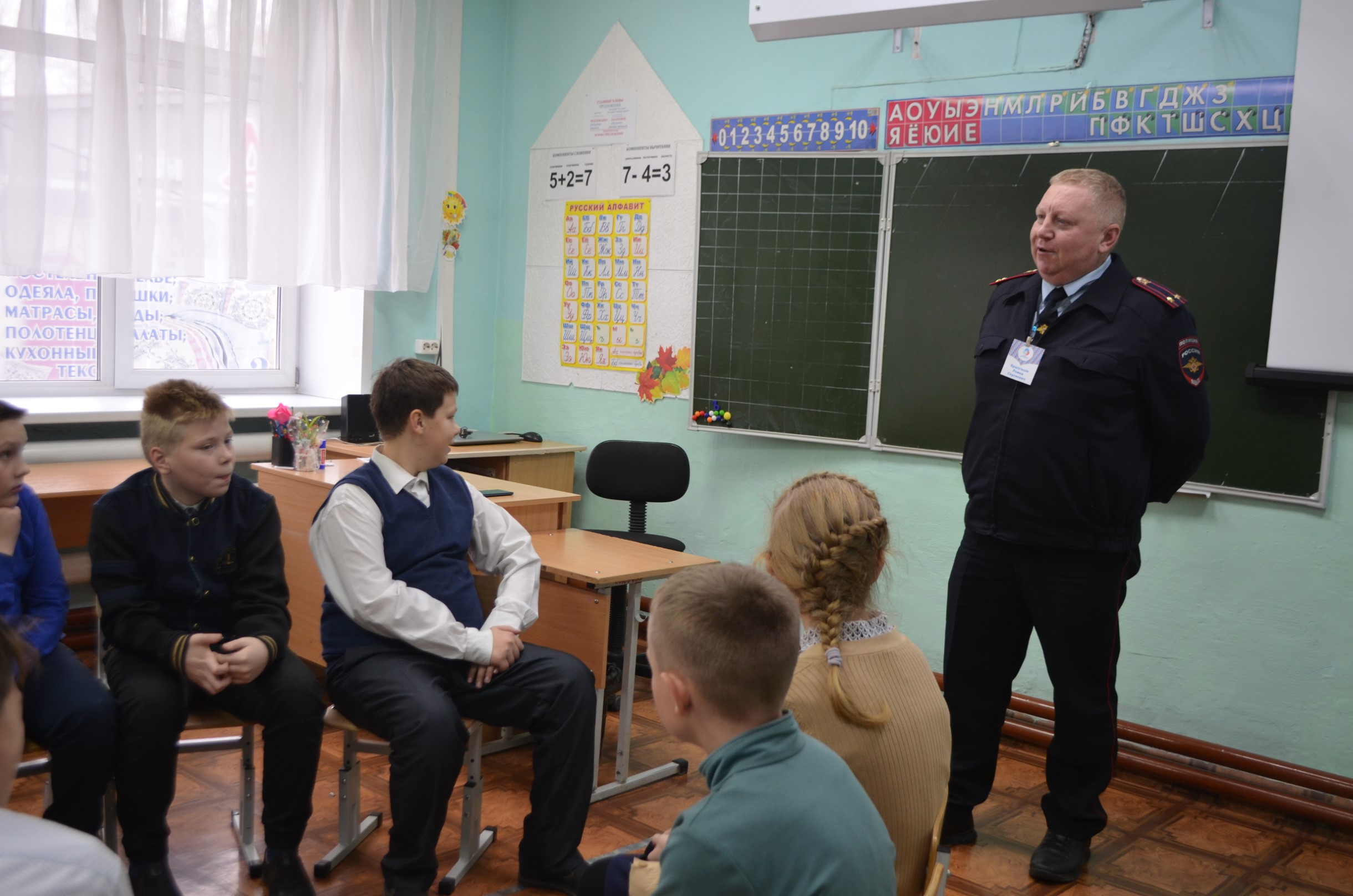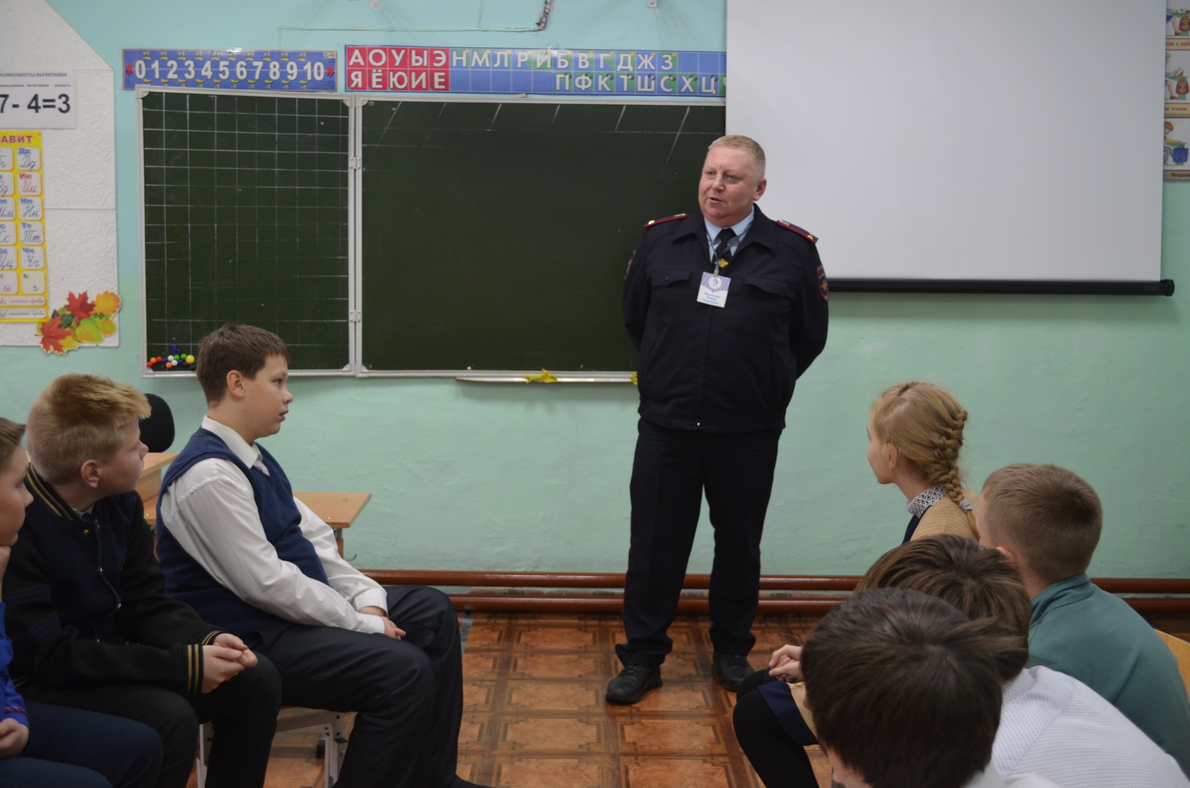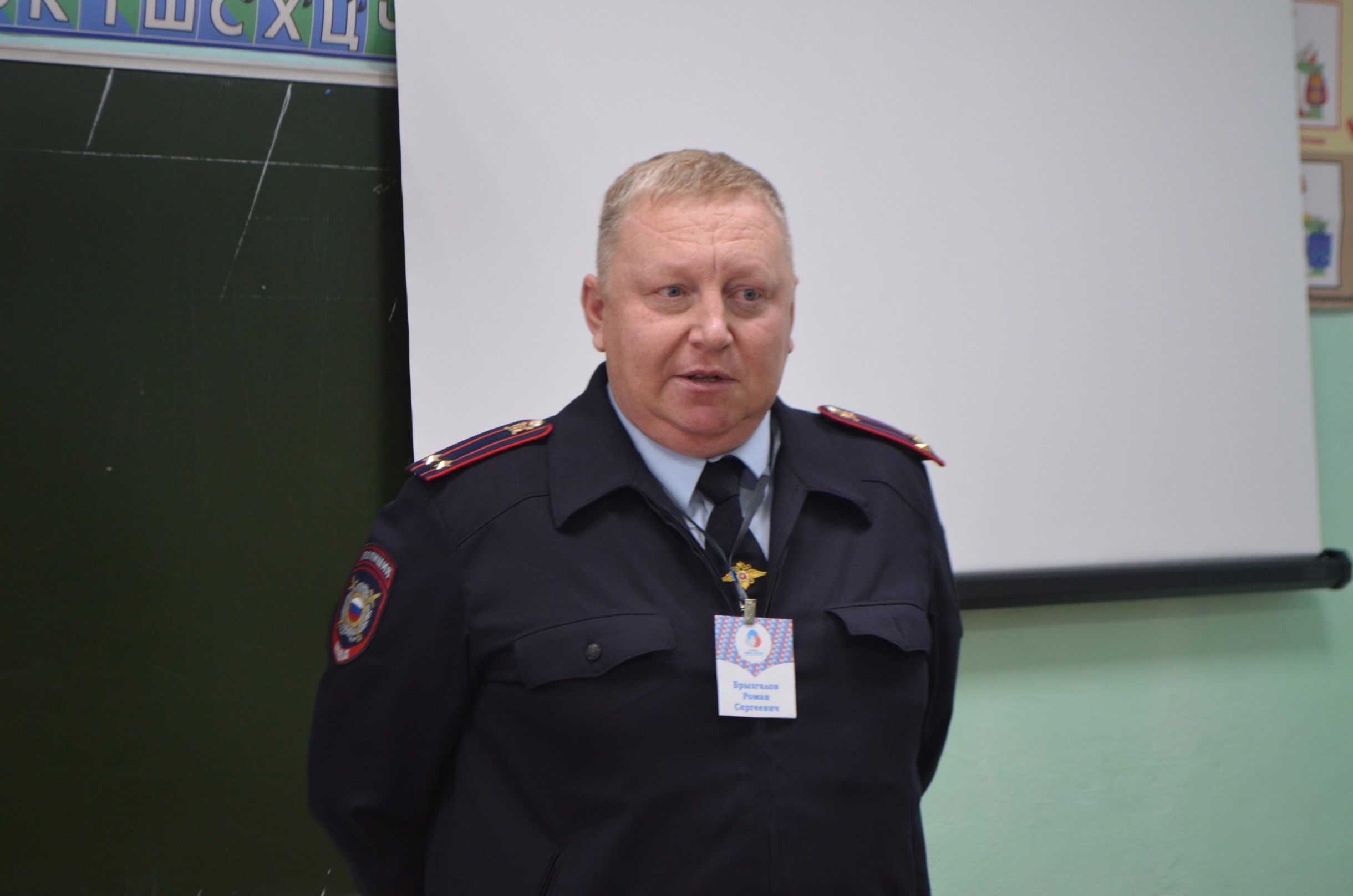 Роман Сергеевич рассказал ученикам о службе в полиции, рабочих буднях участковых уполномоченных полиции и представителей других служб. Полицейский довел информацию о том, как поступить на службу в органы внутренних дел, подчеркнув, что не разу не пожалел, что в свое время и сам сделал такой выбор, ведь служба в полиции – это стабильность и уверенность в завтрашнем дне. Ребят очень увлек и заинтересовал рассказ сотрудника полиции о своей профессии, и Роман Сергеевич с удовольствием ответил на их вопросы, среди которых были: