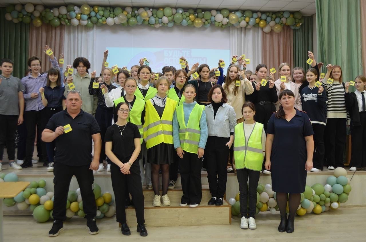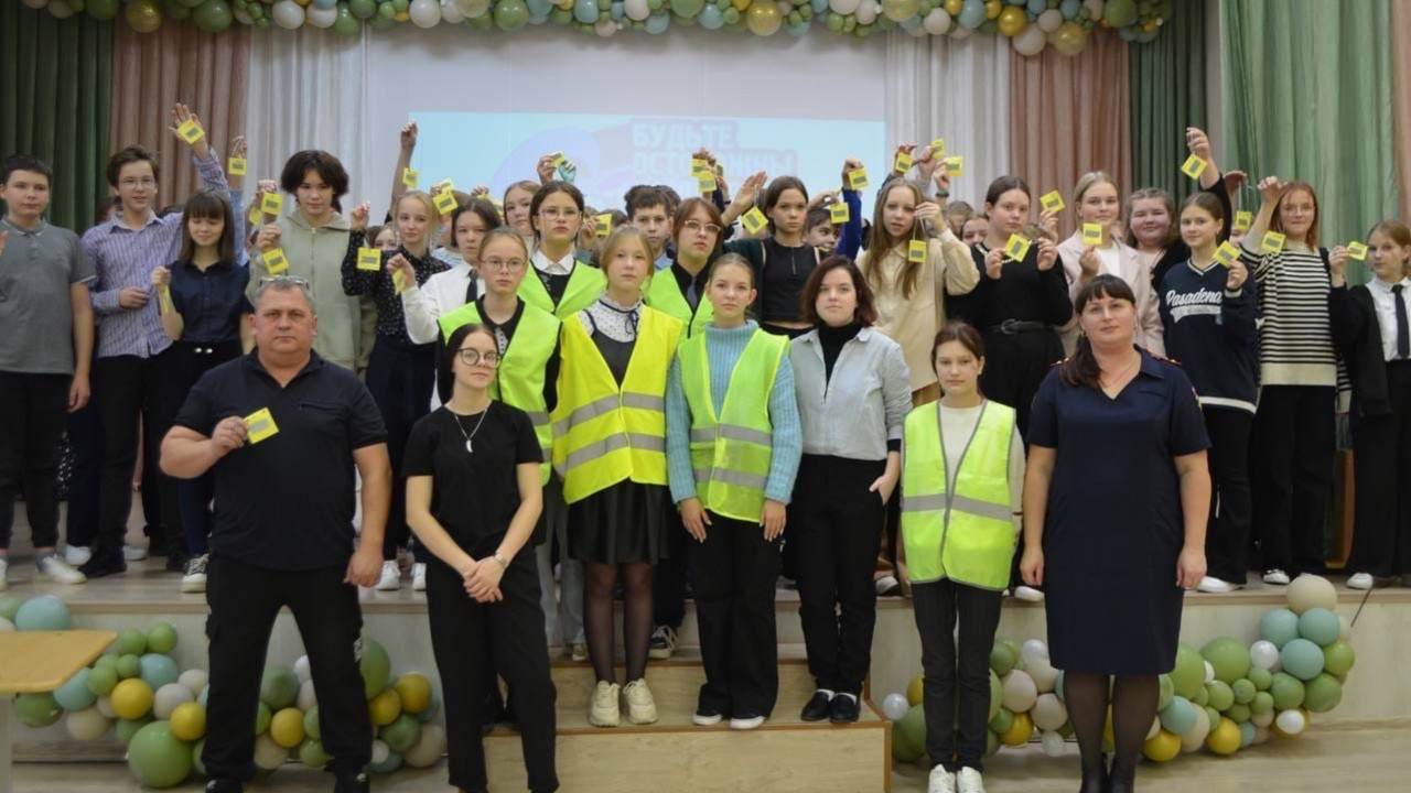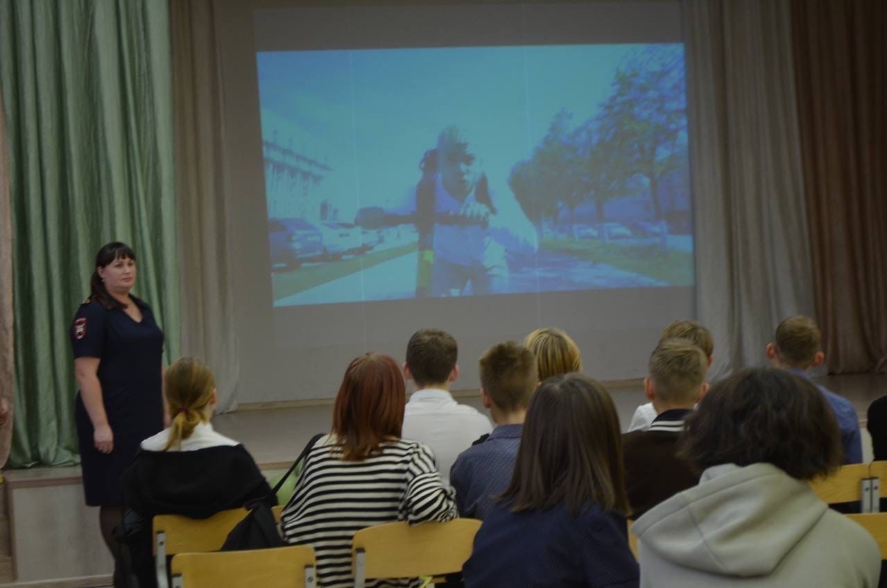 Начался урок безопасности с зажигательного флешмоба, который провели ребята из отряда ЮИД с целью популяризации световозвращающих элементов. Инспектор по пропаганде БДД Татьяна Бердюгина обратила внимание школьников на то, что прежде чем переходить проезжую часть дороги даже по пешеходному переходу, необходимо обязательно остановиться и убедиться, что все транспортные средства остановились и пропускают. Во время перехода проезжей части нельзя пользоваться гаджетами, поскольку это отвлекает внимание пешехода. Кроме того, инспектор напомнила ребятам правила поведения в дворовых территориях, сделав акцент на возможных «дорожных ловушках», подстерегающих как на дороге, так и во дворах. И настоятельно рекомендовала школьникам в темное время суток использовать световозвращающие элементы.
