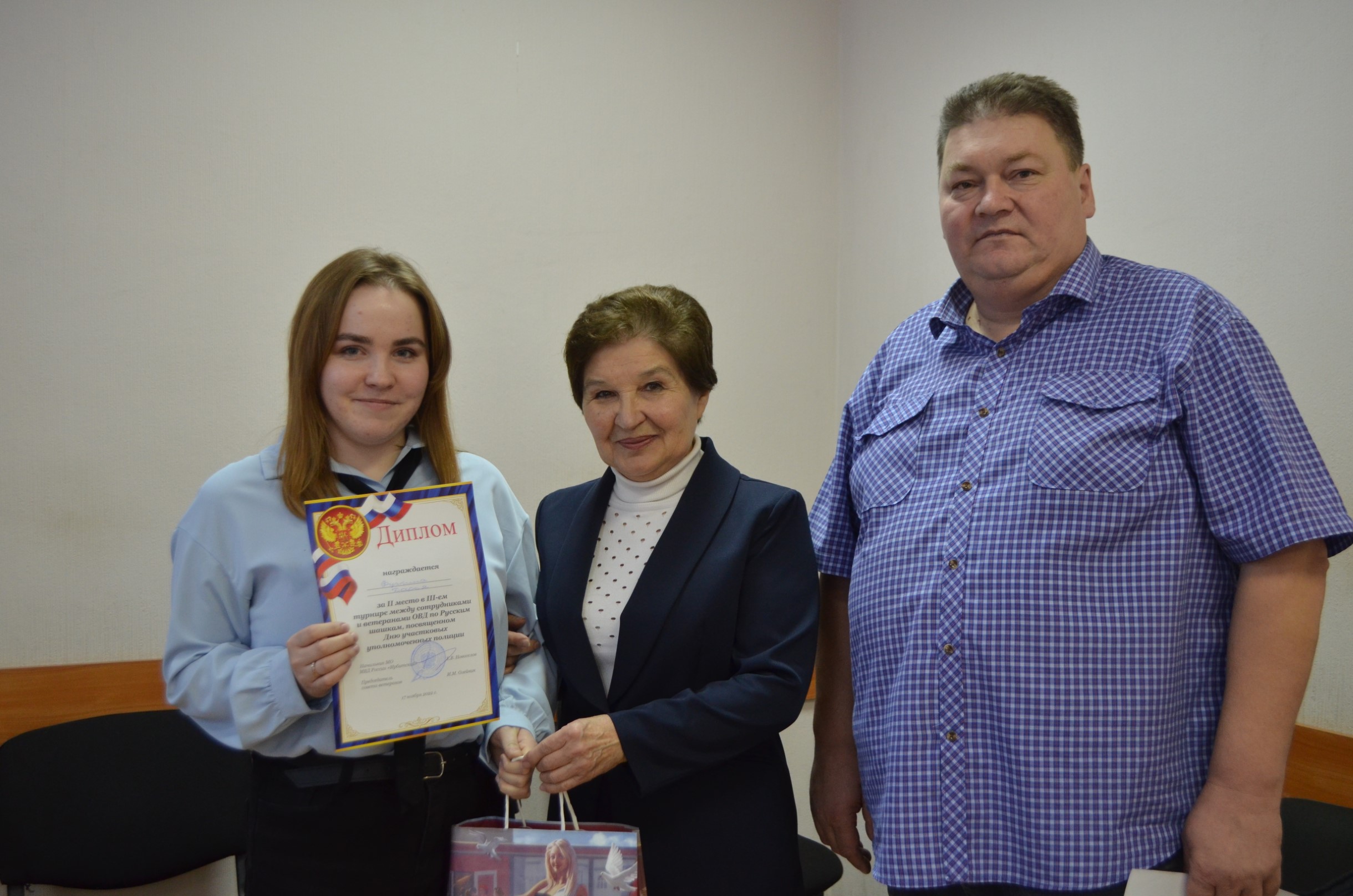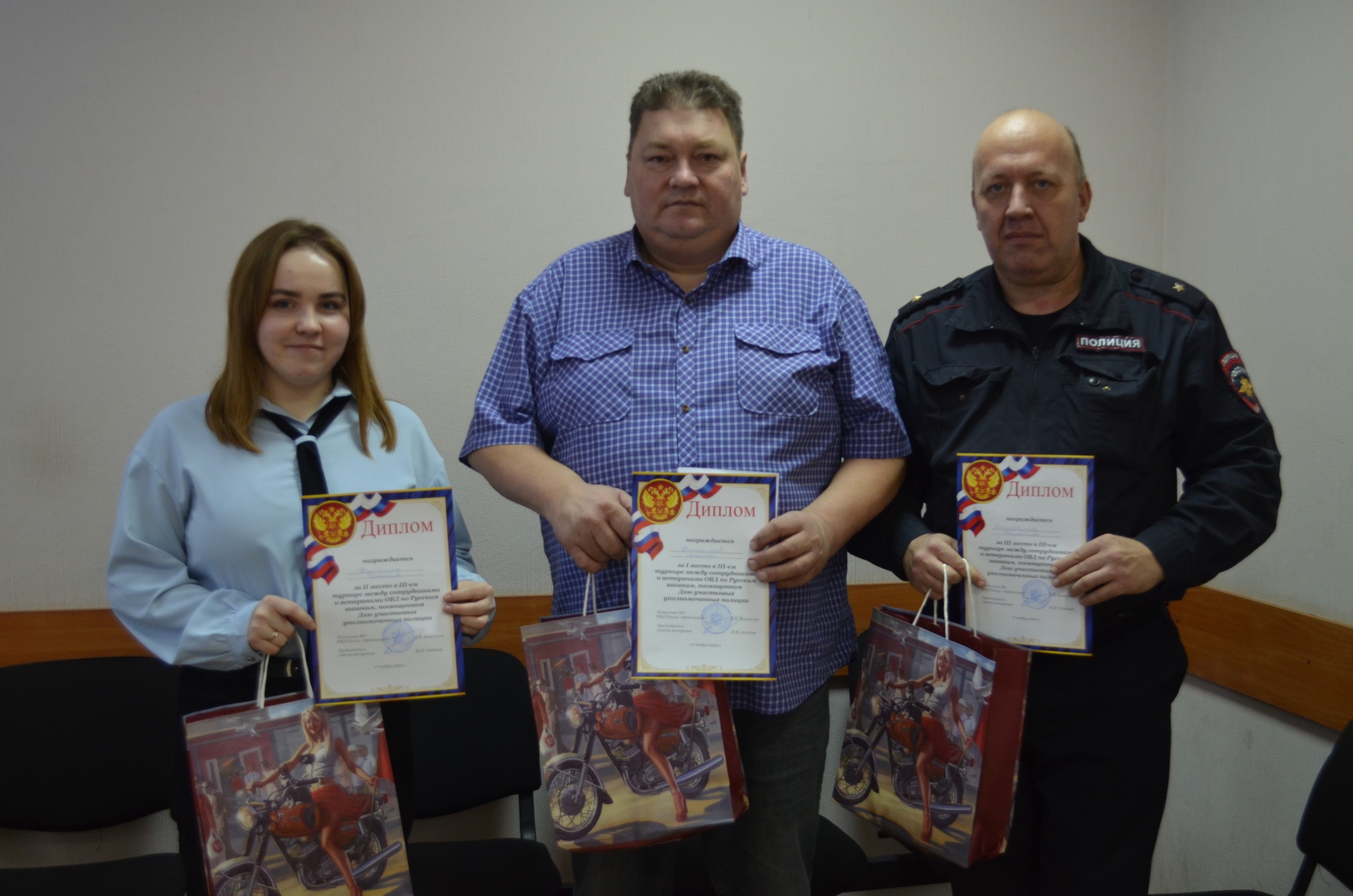 По итогам соревнований первое место у ветерана МВД Алексея Фазылова, второе и третье места заняли сотрудники отдела – Дарья Фучкина и Василий Коновалов. Председатель Совета ветеранов Ирбитского ОВД Ирина Олейник поздравила призеров с победой и вручила им дипломы и подарочные наборы от отдела внутренних дел.