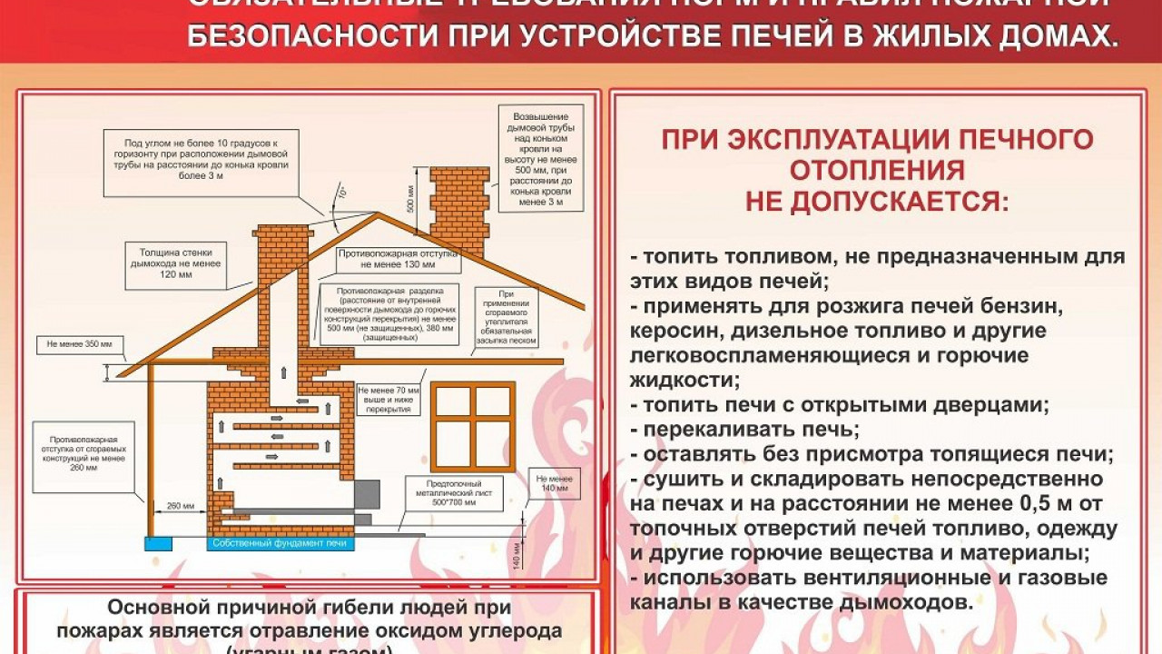 Основными причинами пожаров, связанными с печным отоплением, являются: