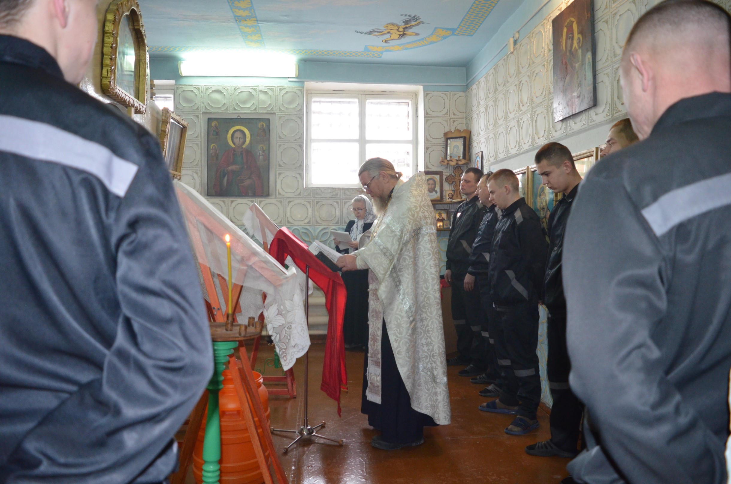 Свято-Троицкое Архиерейское подворье. Отец Николай освятил воду для осужденных, освятил общежитие отряда, спальные помещения, отслужил молебен на тему: «Крещение Господне». Осужденные в помещении локального участка облились крещенской водой.