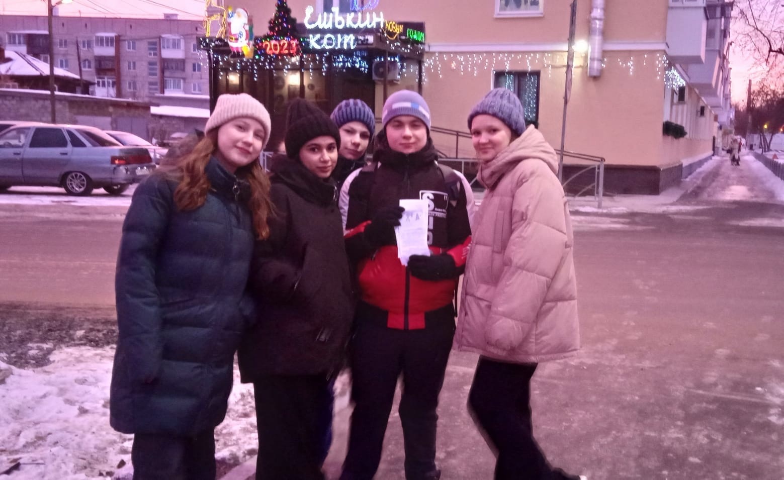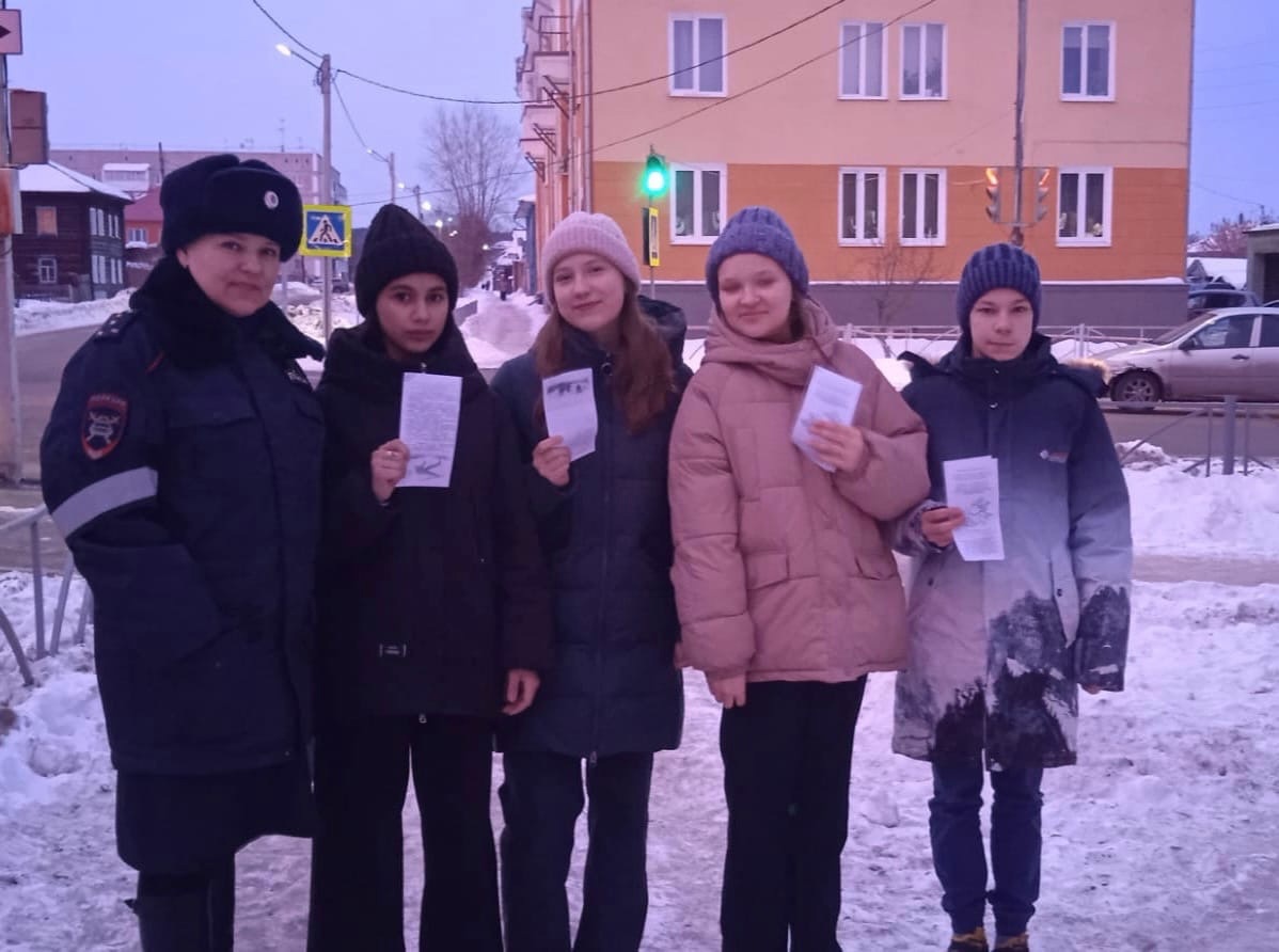 Школьники совместно с преподавателем-организатором ОБЖ Кристиной Дымшаковой и инспектором ИАЗ ОВ ДПС Госавтоинспекции г. Ирбита капитаном полиции Натальей Шабалиной вблизи перекрёстка ул.Азева – Пролетарская вручали прохожим памятки по безопасности дорожного движения: «Засветись!», «Внимание гололед!», «Осторожно горка!» и рассказывали о безопасном поведении на проезжей части дороги. Более 30 юных пешеходов вспомнили основные правила безопасности и обещали беречь свои жизни.