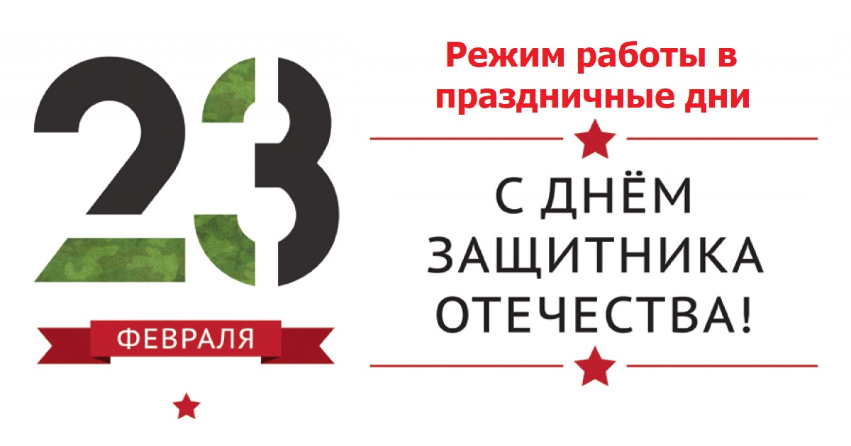 Режим работы в выходные и нерабочие праздничные дни с 23 февраля по 26 февраля 2023 года.
