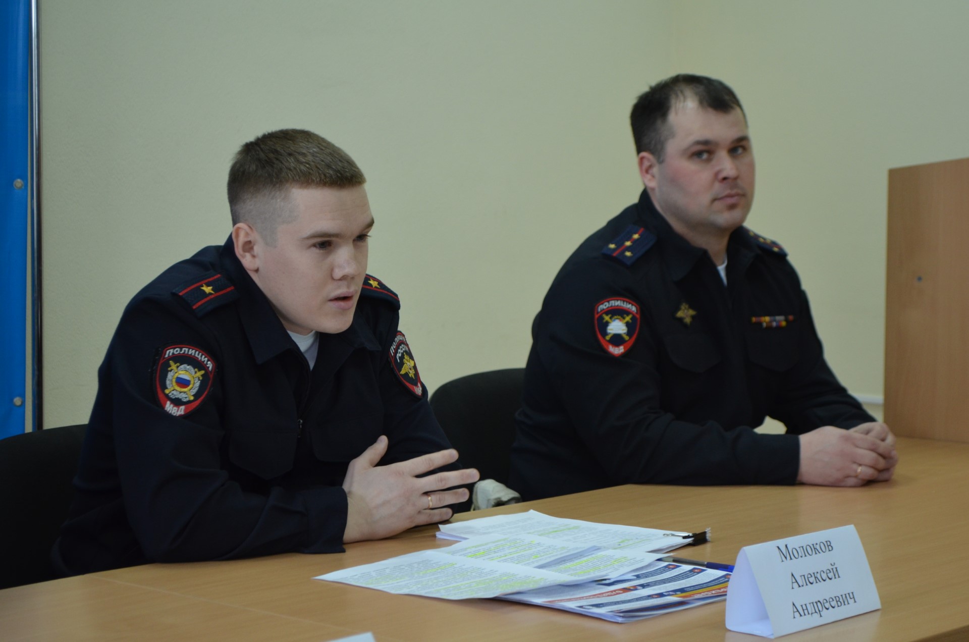 Внимание ребят к проблеме аварийности на дорогах привлек врио начальника ОГИБДД Сергей Гусаров. Он рассказал о статистике дорожно-транспортных происшествий на обслуживаемой территории, основных причинах учетных ДТП, ответственности за нарушение ПДД и призвал молодых людей строго соблюдать правила дорожного движения. Врио начальника ОУУПиПДН Роман Брызгалов рассказал о работе участковых уполномоченных полиции.