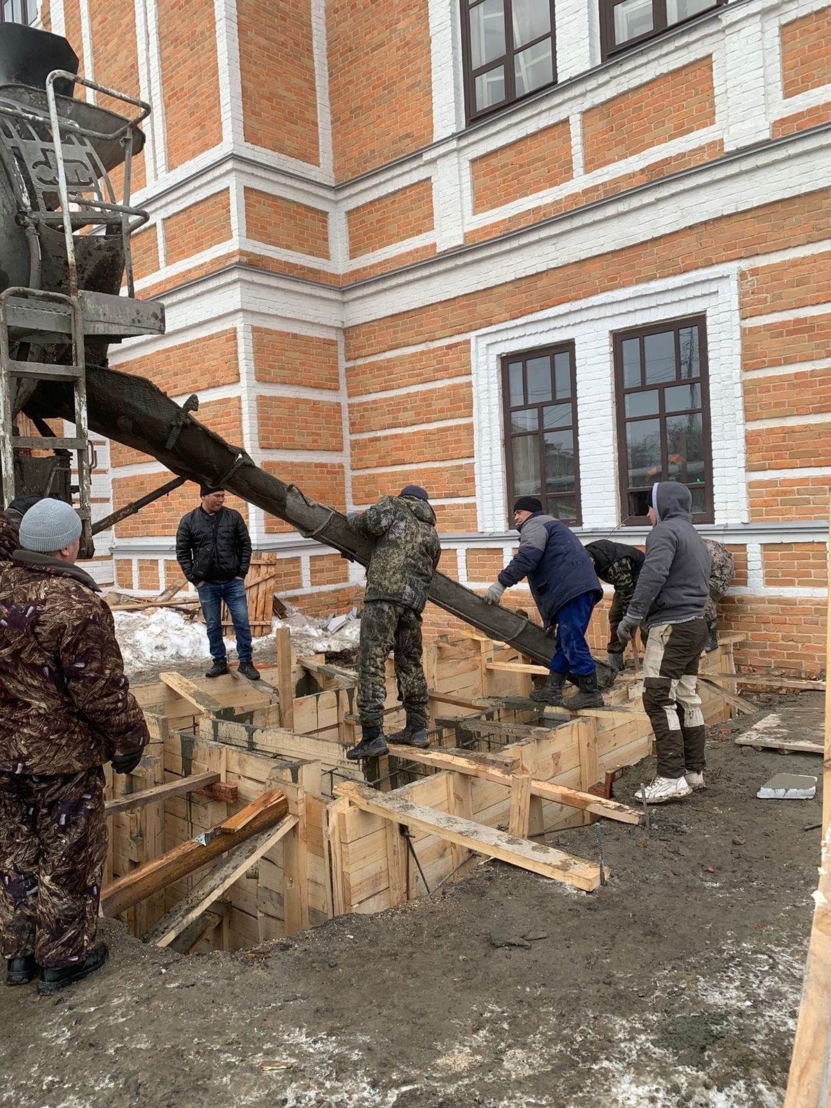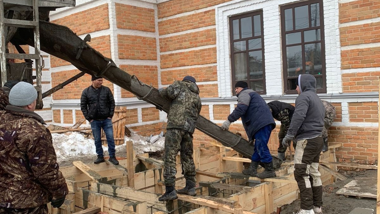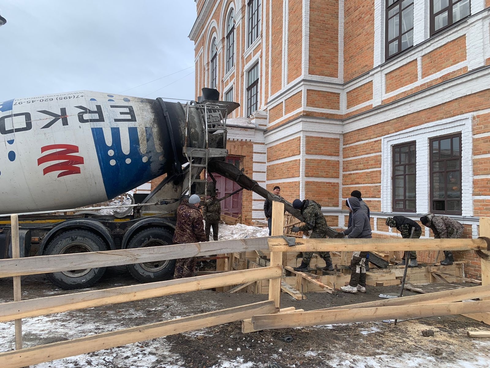Строители приступили к воссозданию крылец, ведущих в подвал.