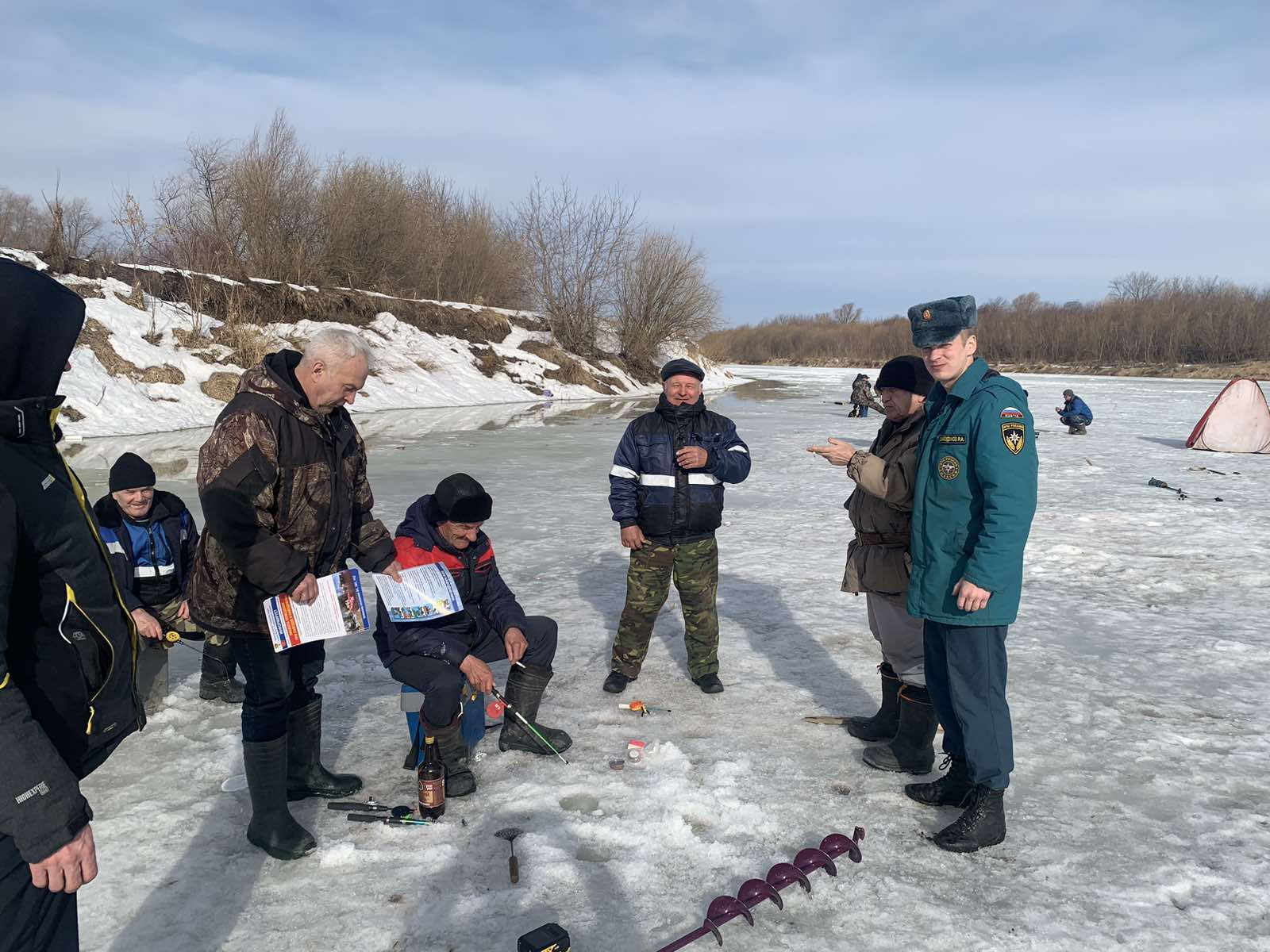 С наступлением весны многие рыбаки выходят на излюбленные места ловли. Многие, провалившись, раз под лед идут снова и снова… Среднесуточные температуры воздуха становятся всё выше, а значит, ледовый покров становится всё более хрупким и опасным для жизни. Для соблюдения порядка и поддержания безопасности на водоемах сотрудники 60 пожарно-спасательной части совместно с сотрудниками Центра общественной безопасности проводят регулярное патрулирование.