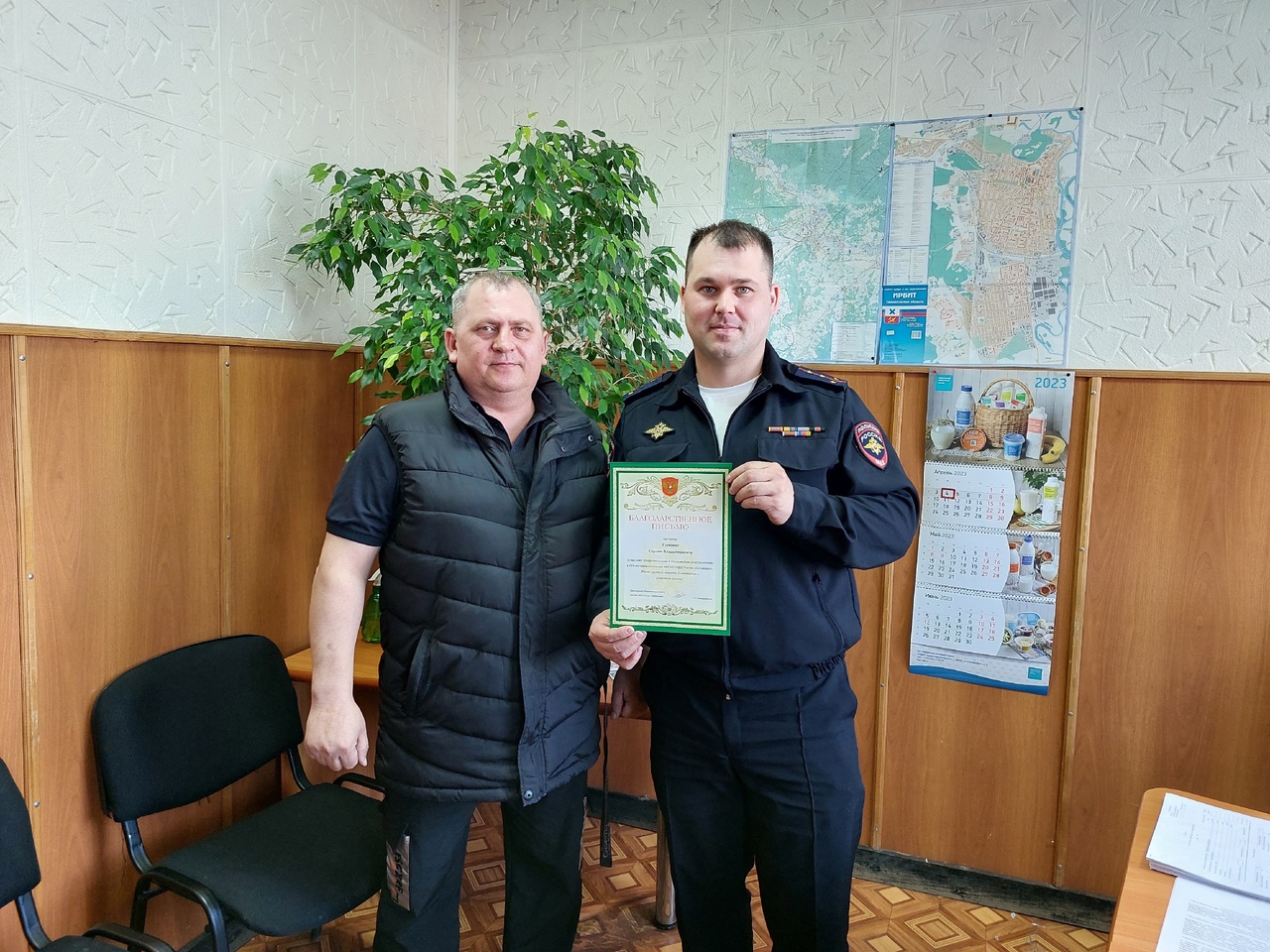 После окончания комиссии, председатель ОС вручил начальнику ОГИБДД благодарственное письмо за высокий профессионализм и плодотворное сотрудничество с общественным советом, а также вручил карту Городского округа «город Ирбит» Свердловской области.