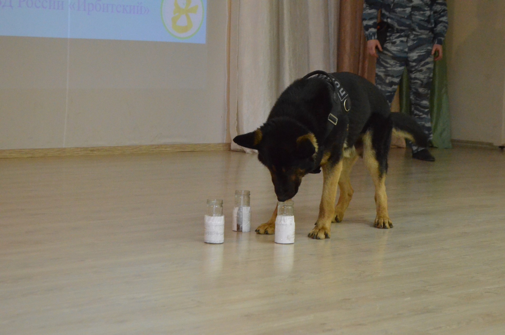 А после профилактической беседы их ждал сюрприз – появление на сцене полицейской служебной собаки по кличке Урал. Старший инспектор-кинолог МО МВД России «Ирбитский» Сергей Фролов рассказал ребятам о своем четвероногом напарнике и его роли в работе полиции. Полицейский продемонстрировал основные навыки и умения Урала, чем привел учеников школы в полный восторг. Ребята с удовольствием посмотрели на показательное выступление собаки-полицейского и с интересом затем стали задавать вопросы инспектору-кинологу.