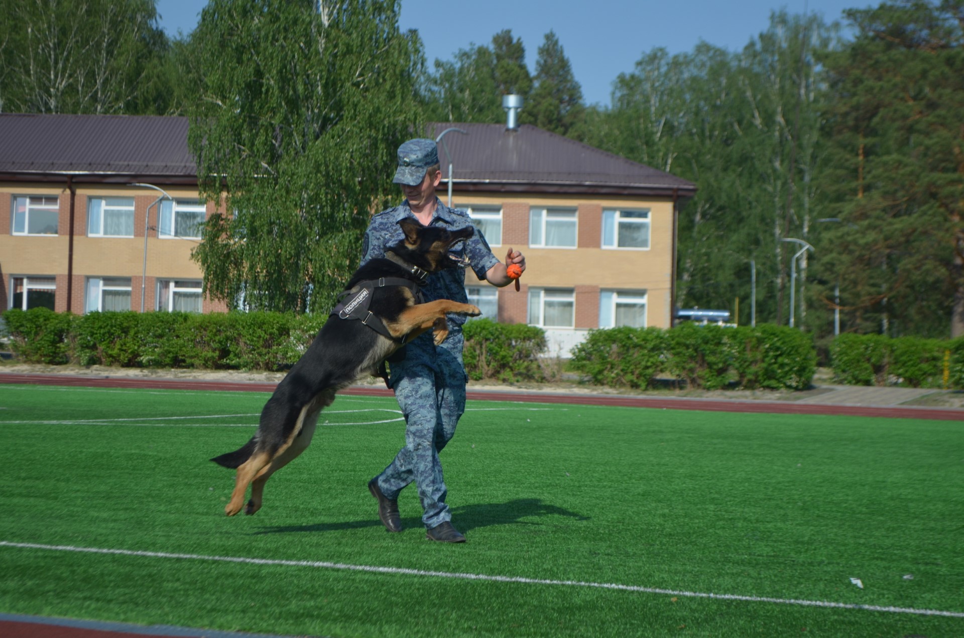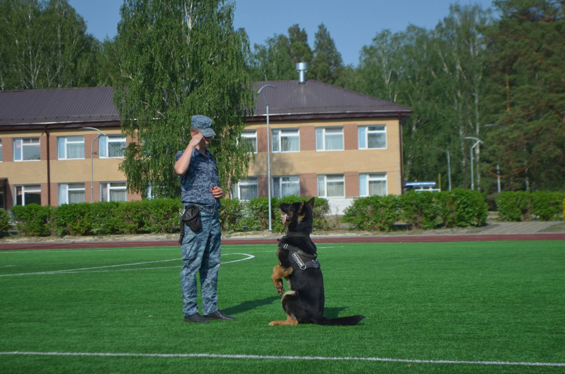 4 июня 2023 года сотрудники МО МВД России «Ирбитский» навестили ребят, отдыхающих на первой смене в загородном оздоровительном лагере «Салют». Старший инспектор-кинолог Сергей Фролов познакомил отдыхающих с профессией кинолога и продемонстрировал навыки своего напарника – служебного пса по кличке Урал. Пёс-полицейский ловко выполнил все команды своего хозяина и порадовал ребят своим показательным выступлением.