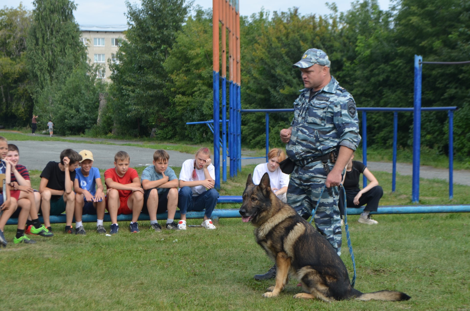 Бодро, энергично, весело для ребят из пришкольного лагеря провел зарядку учитель физической культуры и информатики Ключевской школы, призер регионального этапа всероссийского конкурса «Учитель года России», советник министерства образования и молодежной политики Свердловской области Кирилл Владимирович Цур-Царь. Затем сотрудники патрульно-постовой службы полиции, задачами которых являются предупреждение и пресечение правонарушений на улицах и в общественных местах, показали боевые приемы борьбы. Следующим номером программы стало показательное выступление младшего инспектора-кинолога Сергея Тилгал и его служебной собаки Зорда.