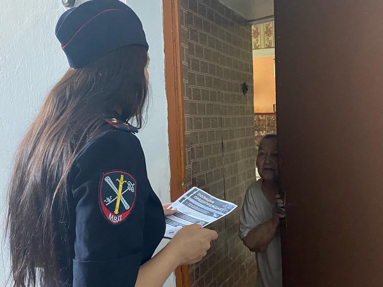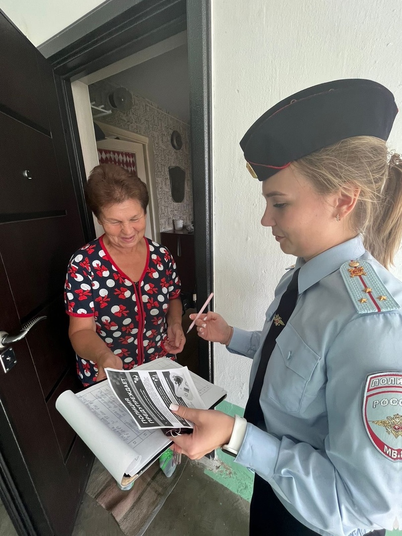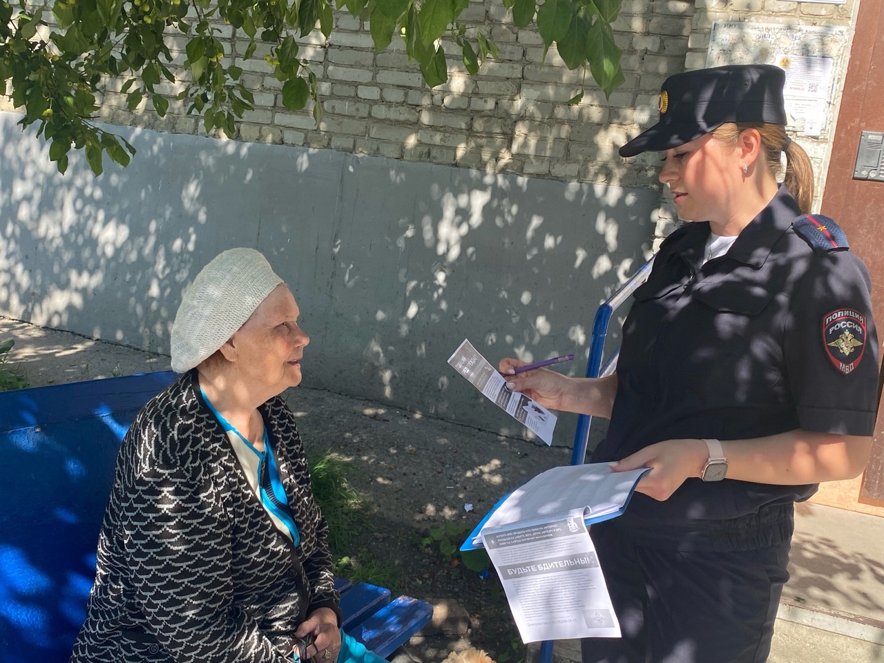 Сотрудники полиции на постоянной основе проводят профилактическую работу с населением в целях предотвращения и предупреждения преступлений мошеннического характера. Полицейскими ведется активное освещение информации о способах обмана граждан и о том, как не стать жертвами мошенников, в средствах массовой информации, проводятся встречи с трудовыми коллективами. Чтобы защитить самую уязвленную категорию граждан к данному роду преступлений – граждан пожилого возраста, сотрудники полиции проводят подомовые обходы и лично беседуют с пенсионерами, разъясняя о возможных случаях мошенничеств. Накануне сотрудники полиции провели очередное подобное мероприятие.