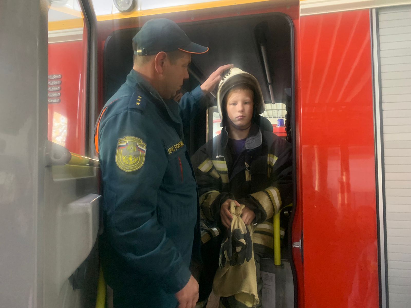 Сотрудники части рассказали ребятам все тонкости работы пожарного, предоставили возможность подержать в руках пожарно-техническое вооружение и даже примерить боевую одежду.