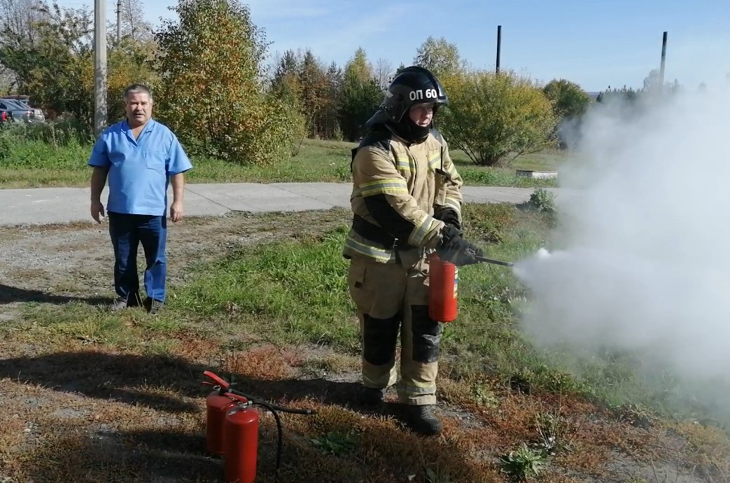 По окончанию тренировки огнеборцы провели дополнительное практическое занятие с медицинским персоналом по правилам использования ручных огнетушителей.