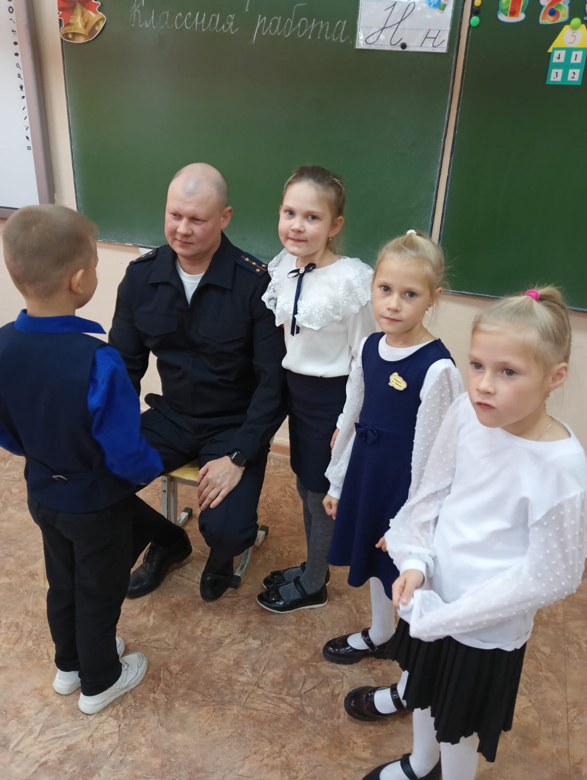 Командир ОВ ДПС капитан полиции Вадим Шептяков принял участие во внеурочном занятии «Разговоры о важном» с первоклассниками школы № 18 г. Ирбита.