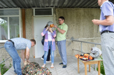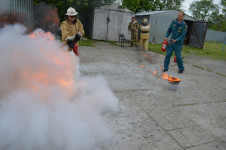 После отработки эвакуации, весь коллектив собрался в актовом зале центра для проведения теоретических занятий по действиям в случае пожара, оказанию первой медицинской помощи и изучению первичных средств пожаротушения. Кроме теоретических вопросов сотрудниками был отработан практический навык вызова пожарной охраны по телефону. И с этим заданием весь персонал справился на оценку отлично. Закончив с теорией, коллектив центра был разделен на четыре команды, которым предстояло пройти четыре испытания, как теоретических, так и практических. На первом теоретическом этапе участникам было необходимо ответить на теоретические вопросы о правилах и методах эвакуации, о требованиях пожарной безопасности. На второй станции участники оказывали первую помощь пострадавшему. На третей, практиковались применению первичных средств пожаротушения, а на четвертом этапе персоналу полагалось проводить эвакуацию пострадавших из задымленного помещения.