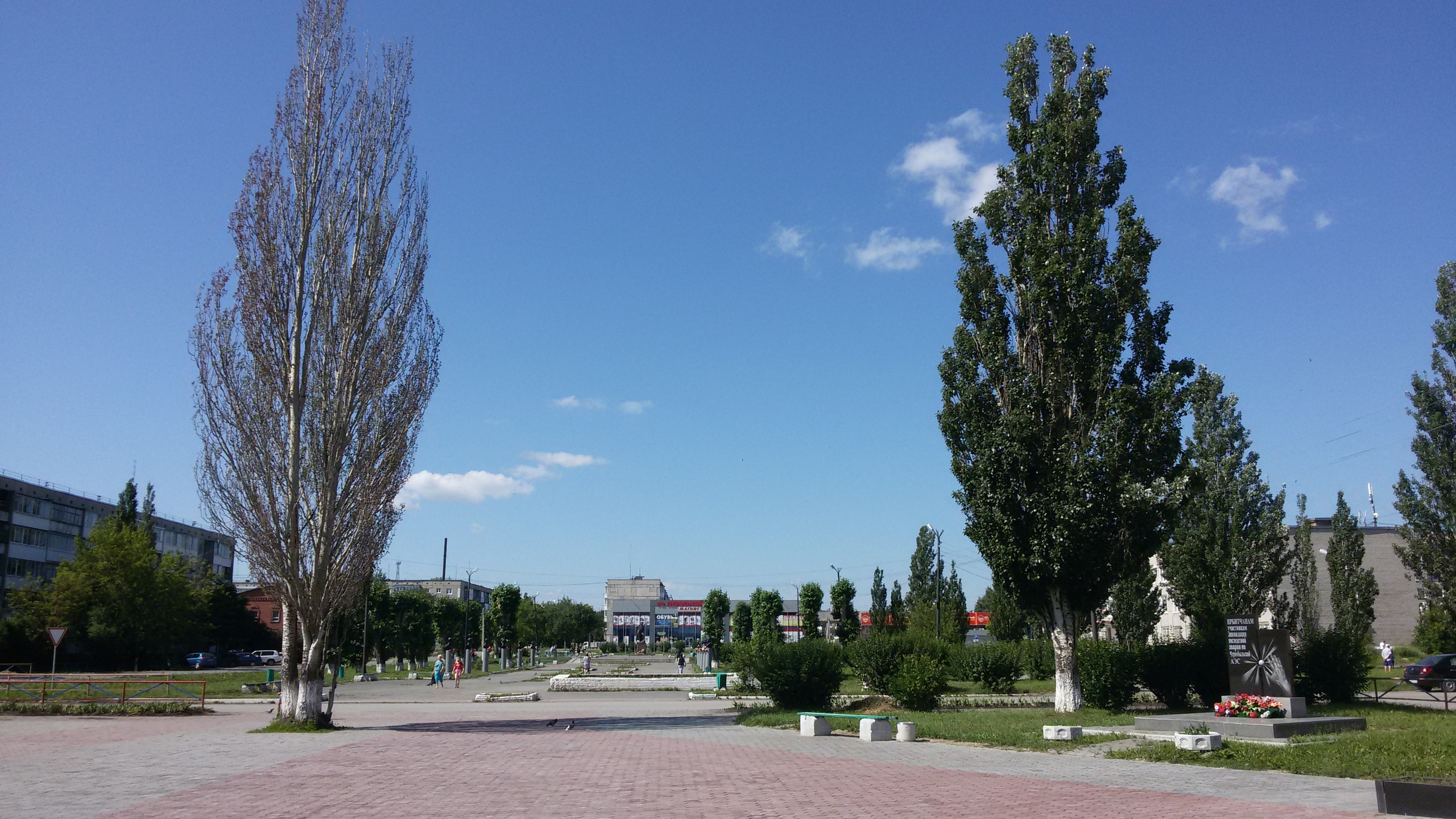 На 17 июля 2018 года около 90% пирамидального тополя засохло, на липе часть листьев пожелтели, ряд веток засохло. Пирамидальные тополя являются уникальными для Ирбита породами, они были специально завезены и посажены в центре Ирбита в конце 70-х годов 20 века сотрудниками горкома и райкома КПСС и ВЛКСМ.