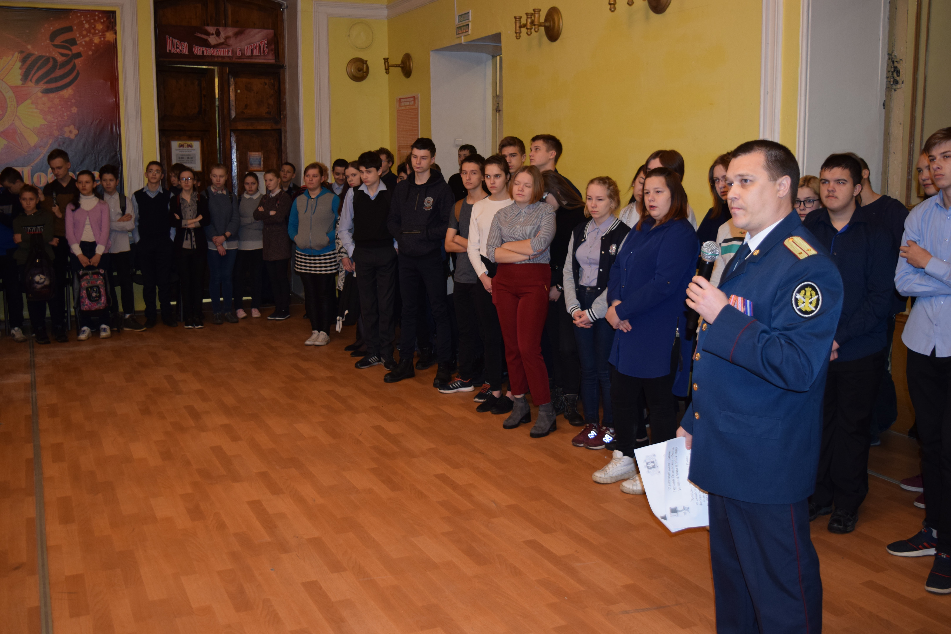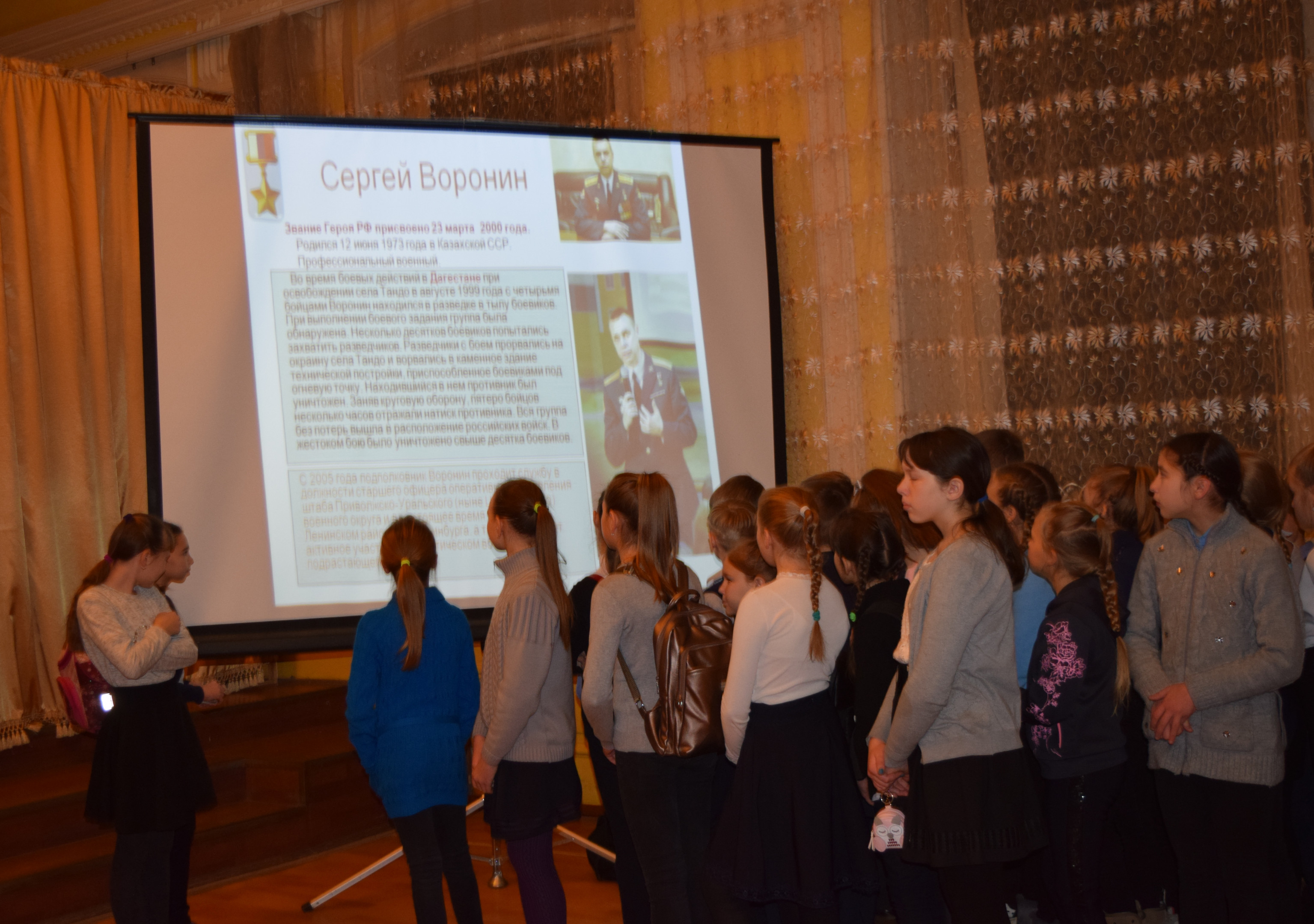С целью повышения престижа службы в УИС и поиску кандидатов для обучения в образовательных учреждениях ФСИН России сотрудники рассказали о службе в УИС. Интерес у ребят вызвала информация о подвигах наших современников сотрудников УИС - Героев России. Эти люди в мирное время, рискуя жизнью, при выполнении служебно-боевых задач исполняли свой патриотический долг по охране закона и порядка в стране. И сегодня по ним равняются молодые сотрудники. В заключение для учащихся был показан сюжет о подвиге Героя России С.А. Багаева.