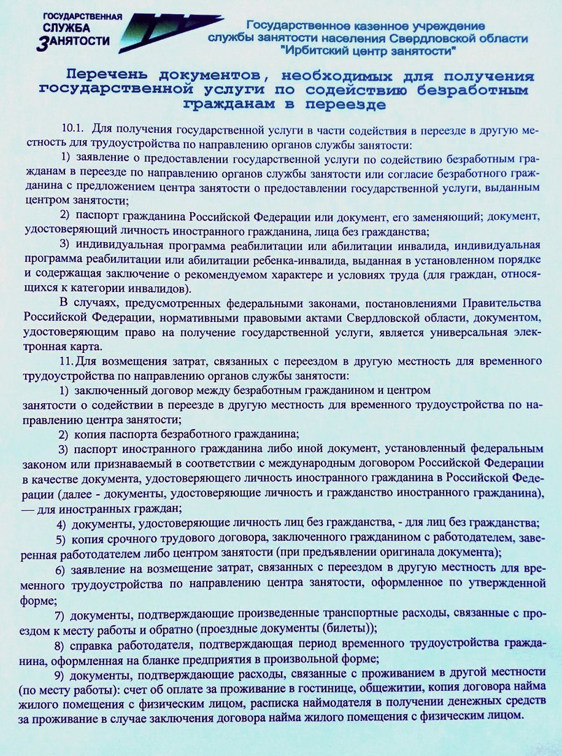 Уважаемые безработные граждане, желающие трудоустроиться за пределами Ирбита и Ирбитского района, но в пределах Свердловской области, служба занятости оказывает финансовую поддержку! По вопросам переезда обращайтесь в каб. № 1 (ул. Советская, 61) к начальнику отдела трудоустройства: ☎ (34355) 6-23-39 - Дарья Николаевна.