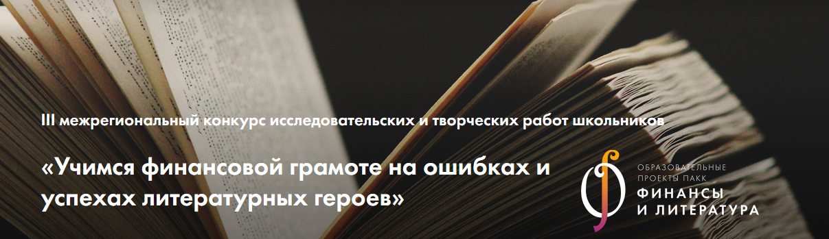 В соответствии с письмом Федеральной службы по надзору в сфере защиты прав потребителей и благополучия человека по Свердловской области и Федерального бюджетного учреждения здравоохранения «Центр гигиены и эпидемиологии в Свердловской области» № 66-00-13/05/81-2019 от 10.01.2019 г., № 02-01-13-11-01/14 от 10.01.2019 г. «Об участии школьников в конкурсе исследовательских и творческих работ», информируем Вас, что в рамках проекта «Содействие повышению уровня финансовой грамотности населения и развитию финансового образования в Российской Федерации» компанией ПАКК (ЗАО «ПАКК») совместно с экономическим факультетом МГУ им. М. В. Ломоносова под эгидой Министерства финансов РФ проводится ежегодный конкурс исследовательских и творческих работ школьников «Учимся финансовой грамотности на ошибках и успехах литературных героев». Конкурс рассчитан на школьников 7-11 классов, которые под руководством своих педагогов и при содействии экспертов ПАКК готовят конкурсные работы на материале литературных произведений.