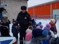 Сотрудники ГИБДД являются давними друзьями дошколят. Госавтоинспекторы стараются разнообразными способами показать детям важность соблюдения Правил дорожного движения. В этот раз настоящим подарком для юных участников дорожного движения детского сада № 13 г. Ирбита стал патрульный автомобиль ДПС, который встретил ребят, вышедших на прогулку. Полицейские не только рассказали ребятам о своей службе, но и разрешили полностью исследовать транспортное средство, находящееся на вооружении Госавтоинспекции, а также попробовать себя в роли инспектора дорожной полиции и при помощи специального громкоговорящего устройства остановить выдуманный автомобиль нарушителя.