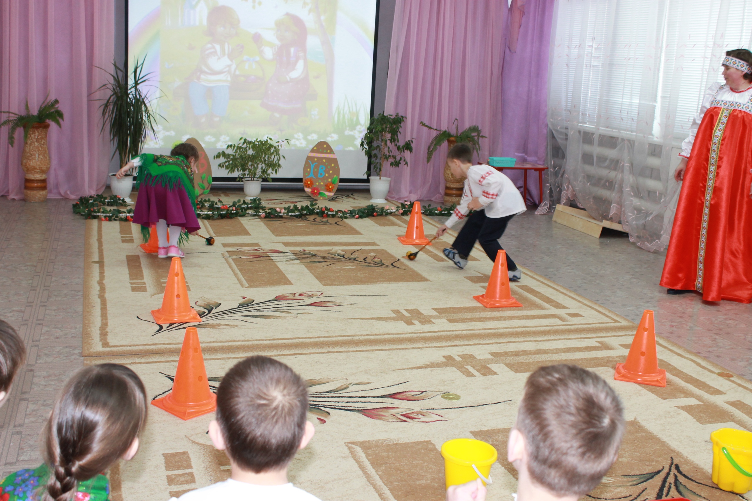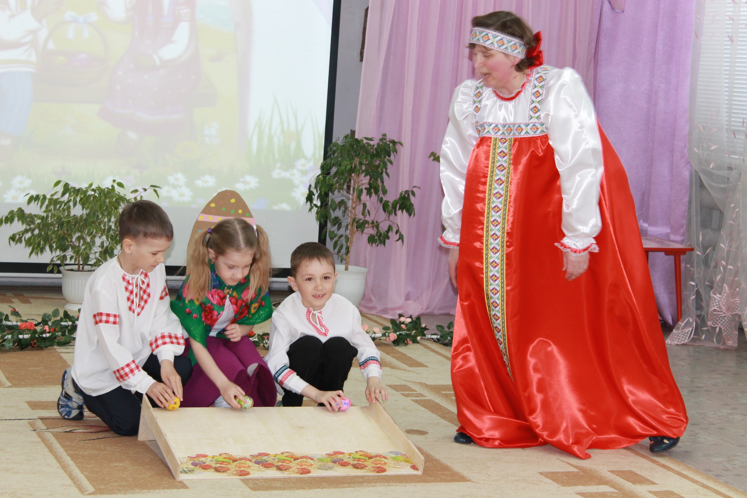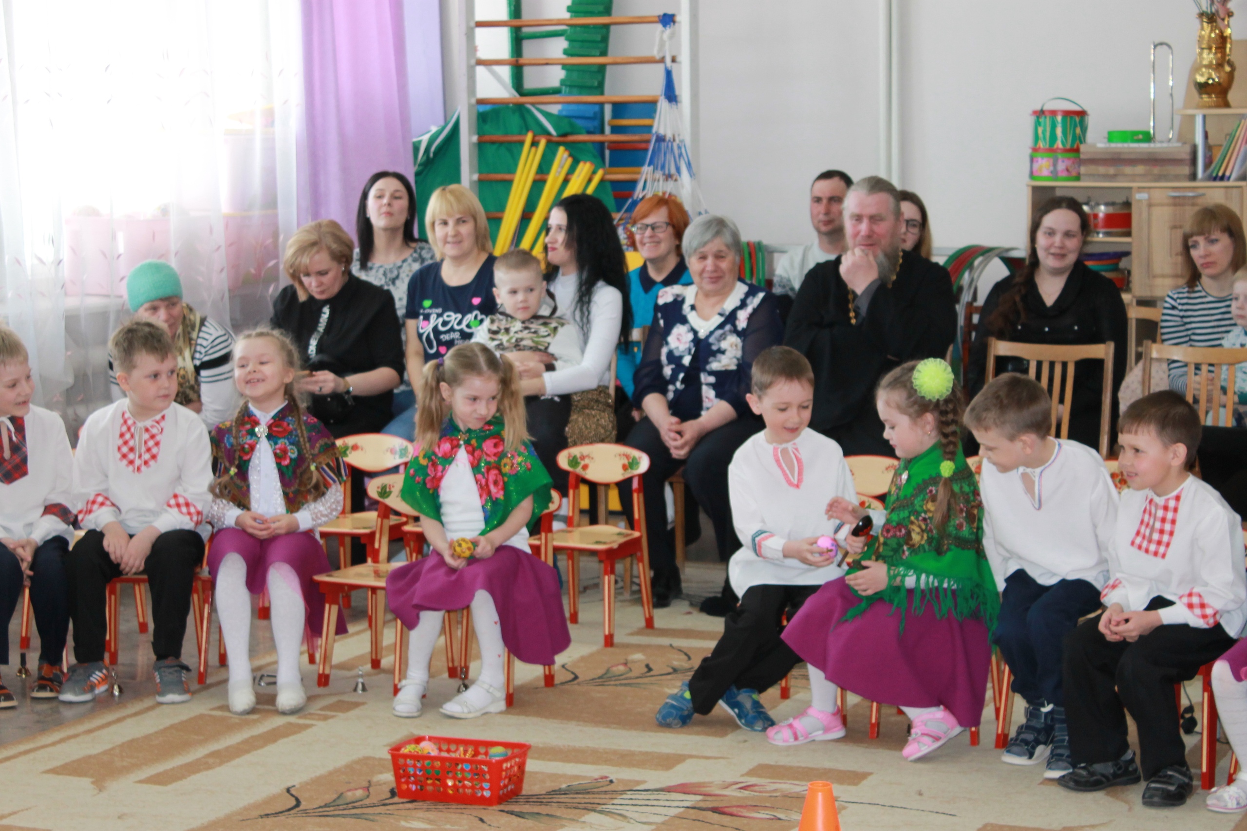 Так, 30 апреля в детском саду прошла праздничная познавательно-игровая программа «Пасху радостно встречаем». Весело и задорно встречали Пасху, как дошкольники, так и родители, пришедшие на праздник. На протяжении всего вечера в зале звучали песни, исполнялись задорные танцы и, конечно же, все присутствующие с интересом играли в пасхальные игры.