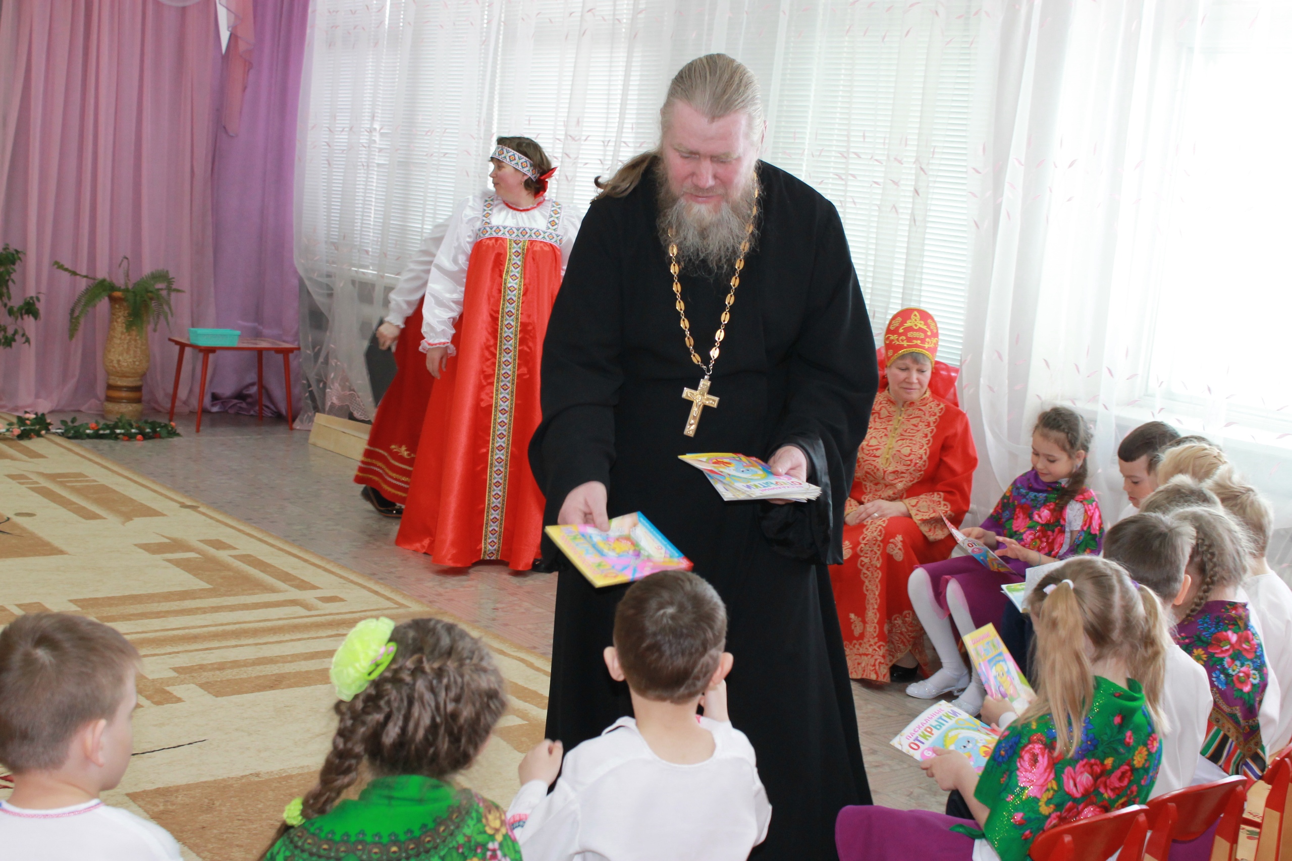 Уже стало традицией, что в детский сад № 6 приходят гости, а гости не простые - это сотрудники Общедоступной универсальной библиотеки и иерей Русаков Николай, настоятель Прихода во имя Успения Божией Матери пос. Зайково.