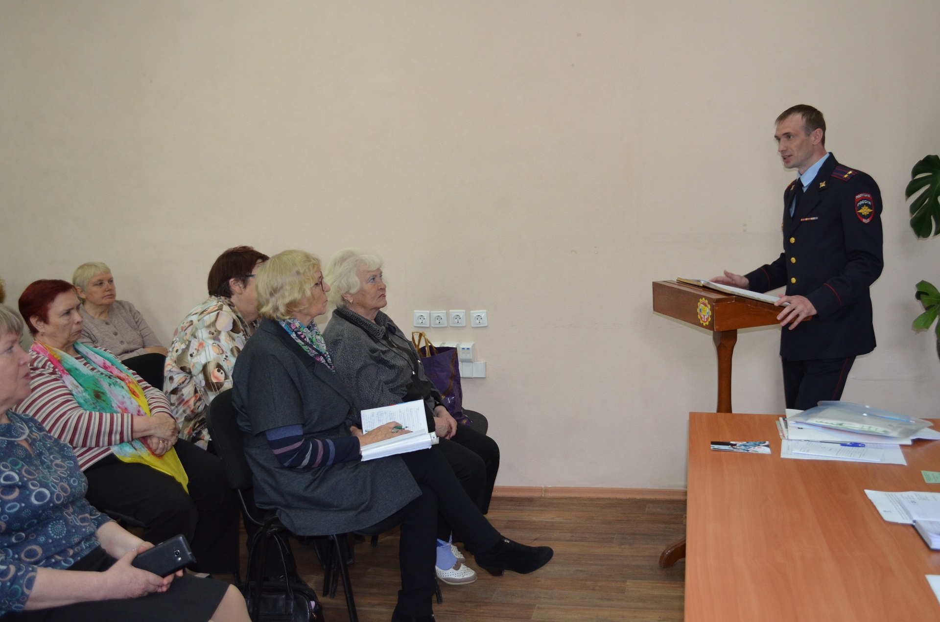 Артем Валерьевич рассказал об основных видах и способах совершения обмана, в доступной форме дал рекомендации, как не попасть в руки мошенников и сохранить свое здоровье. Особое внимание во время беседы он уделил телефонному мошенничеству. Полицейский порекомендовал не доверять сомнительным телефонным звонкам и незамедлительно сообщать о таких случаях в полицию. В ходе встречи сотрудник полиции привел конкретные примеры, в которых граждане лишились своих сбережений. Пострадавшими, в основном, стали люди пожилого возраста. Подполковник полиции подробно разъяснил, как можно было избежать обмана.