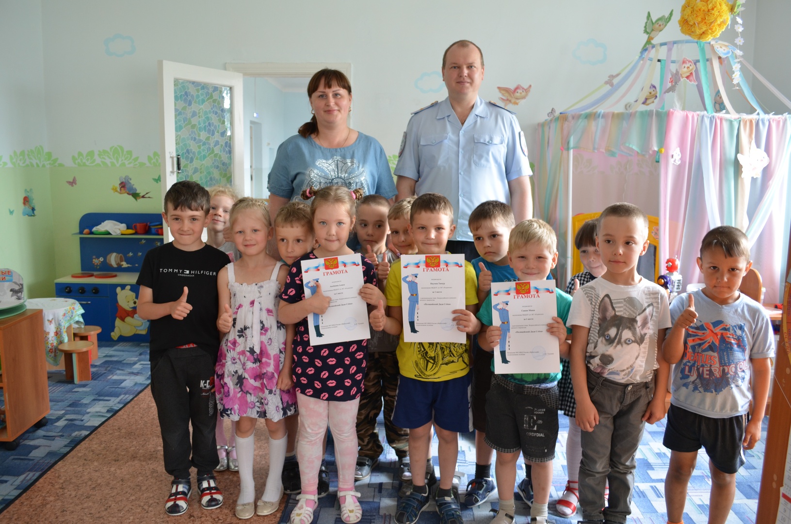 Участие приняли 9 детских образовательных учреждений. В каждом детском саду сотрудников полиции встретили очень радушно. Татьяна Бердюгина напомнила детям о необходимости соблюдения правил дорожного движения, а начальник Госавтоинспекции торжественно вручил почетные грамоты победителям и участникам.