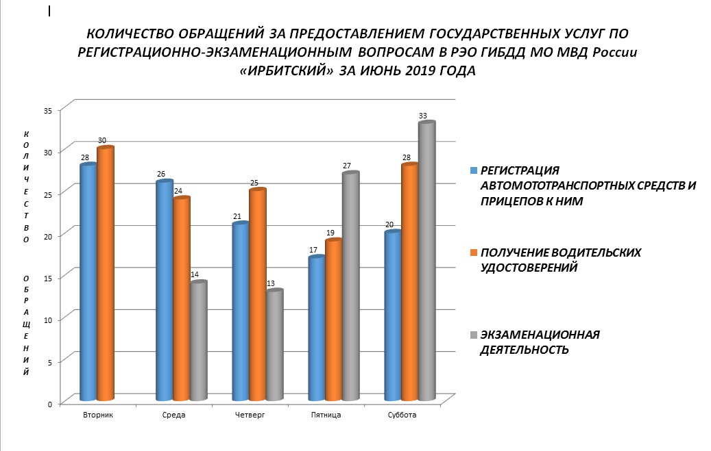 Госавтоинспекция сообщает, что в 2019 году у большинства водителей истекает срок действия водительского удостоверения и в целях удобства и экономии Вашего времени, исключения очередей при оказании государственных услуг по вопросам регистрации автомототранспортных средств и прицепов к ним, выдачи водительских удостоверений, просит Вас предварительно подавать заявку через Единый портал государственных и муниципальных услуг на получение соответствующей государственной услуги (получение водительского удостоверения, регистрация автомототранспортных средств и прицепов к ним). Еще одним важным преимуществом использования единого портала государственных услуг является предоставление 30% скидки на оплату госпошлины гражданам, подающим заявления на получение государственных услуг в электронном виде. Также сотрудниками РЭО ГИБДД МО МВД России «Ирбитский» ежемесячно проводится мониторинг активности граждан по времени и дням недели, с целью выбора наименее загруженного времени и дня недели для получения госуслуги.