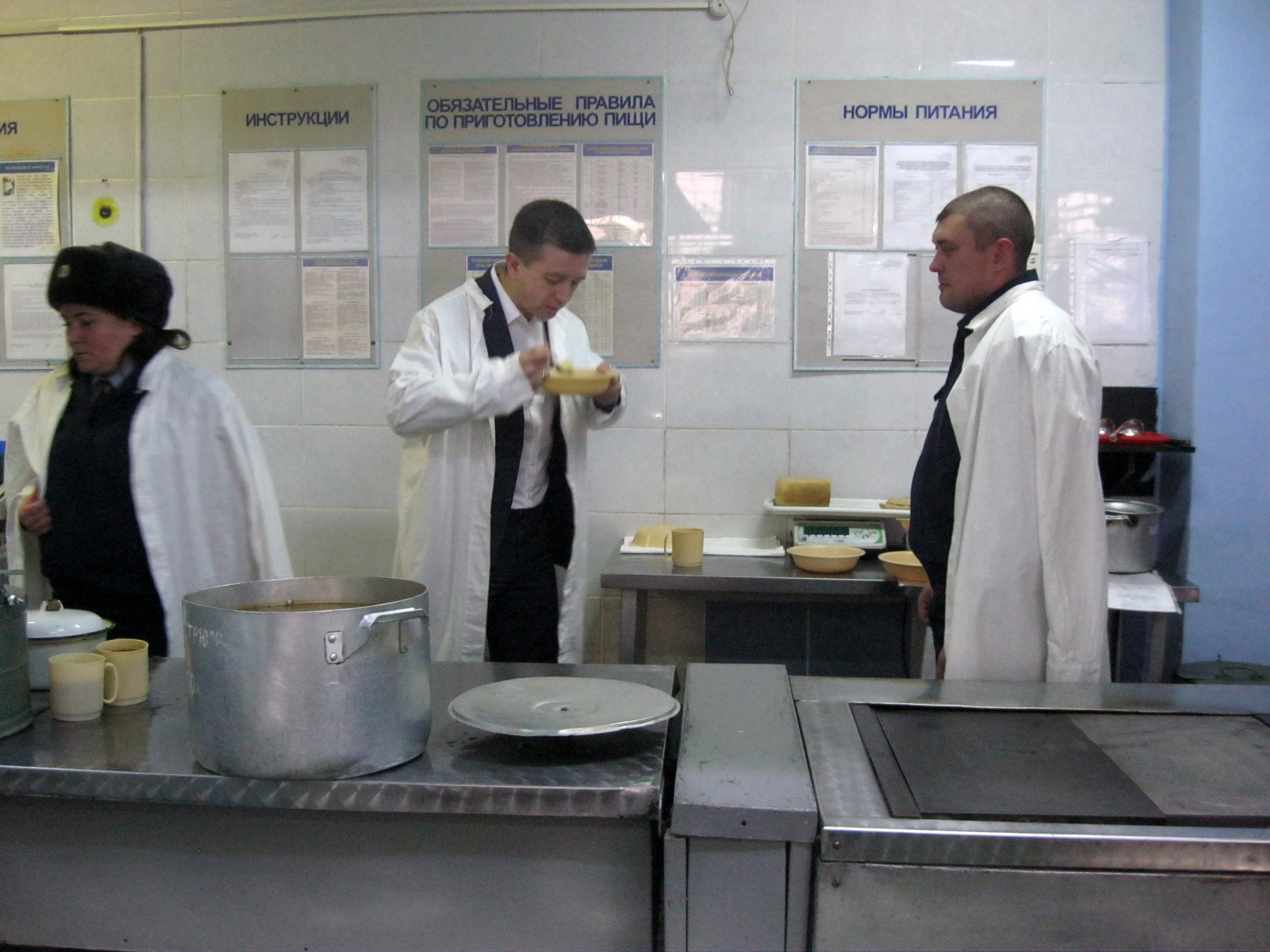На пищеблоке СИЗО депутат проверил качество приготовления пищи для подозреваемых, обвиняемых и осужденных, попробовал хлеб из пекарни учреждения, и был приятно удивлен его качеством.