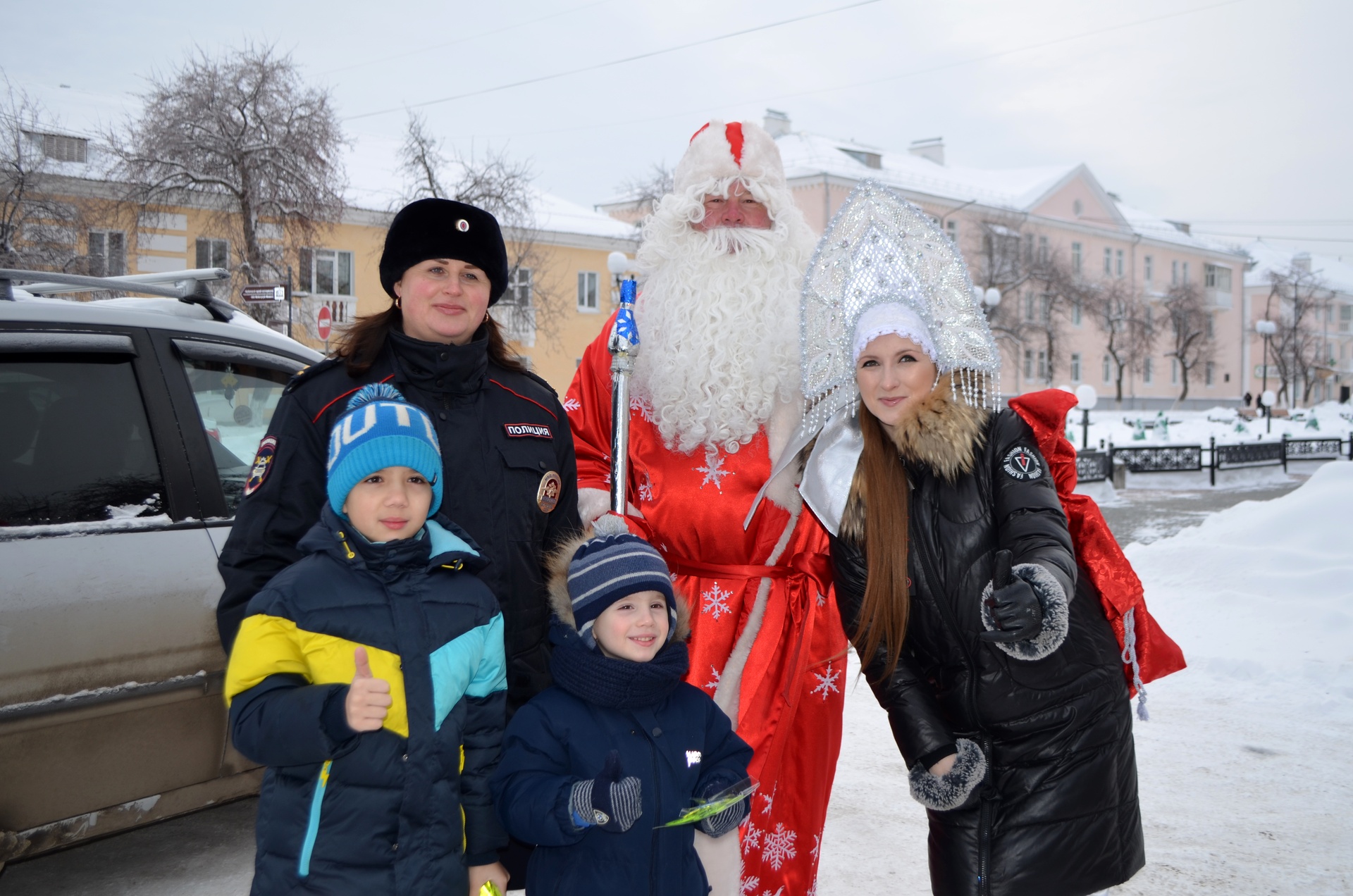 Председатель Думы Павел Николаевич Томшин в роли Деда Мороза и сотрудники Госавтоинспекции останавливали участников дорожного движения, чтобы поздравить их с наступающими праздниками. Самым маленьким участникам дорожного движения Дед Мороз и Снегурочка дарили световозвращающие элементы, а сотрудники ГИБДД напоминали о правилах поведения на дороге. Родителям детей вручали памятки по безопасному участию детей в дорожном движении.