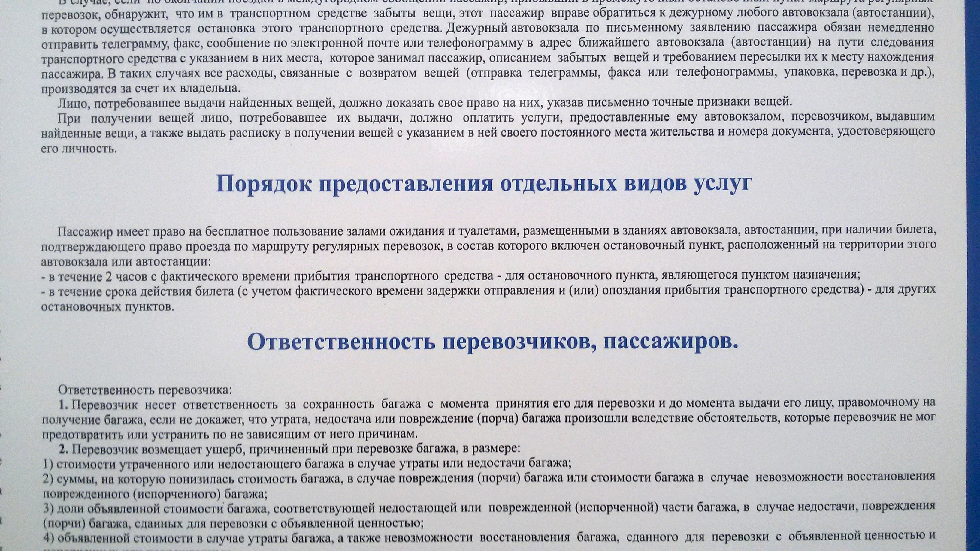 Порядок предоставления отдельных видов услуг на автостанции в городе Ирбите