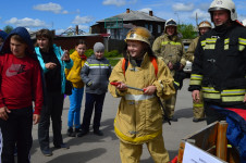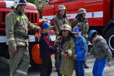 В рамках праздника была организована выставка пожарной техники, в ходе которой, ребята познакомились с пожарными автомобилями, аварийно-спасательным вооружением. Некоторые попробовали себя в роли пожарных, попробовав тушить условный пожар ранцевыми огнетушителями, также мальчики и девочки надевали боевую одежду пожарного.