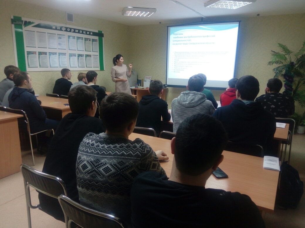 Наталья Николаевна ознакомила будущих выпускников с активно-развивающимися производствами и с перечнем наиболее востребованных профессий на рынке труда не только города Ирбит и Ирбитского района, но и всей Свердловской области. Профконсультант очень подробно объяснила студентам, где и с помощью каких средств можно найти и посмотреть интересующие их вакансии, как подготовить себя к собеседованию и на что делать ставку в своём дальнейшем профессиональном и личностном развитии, а также как составить резюме и на что следует обратить особое внимание при его составлении.
