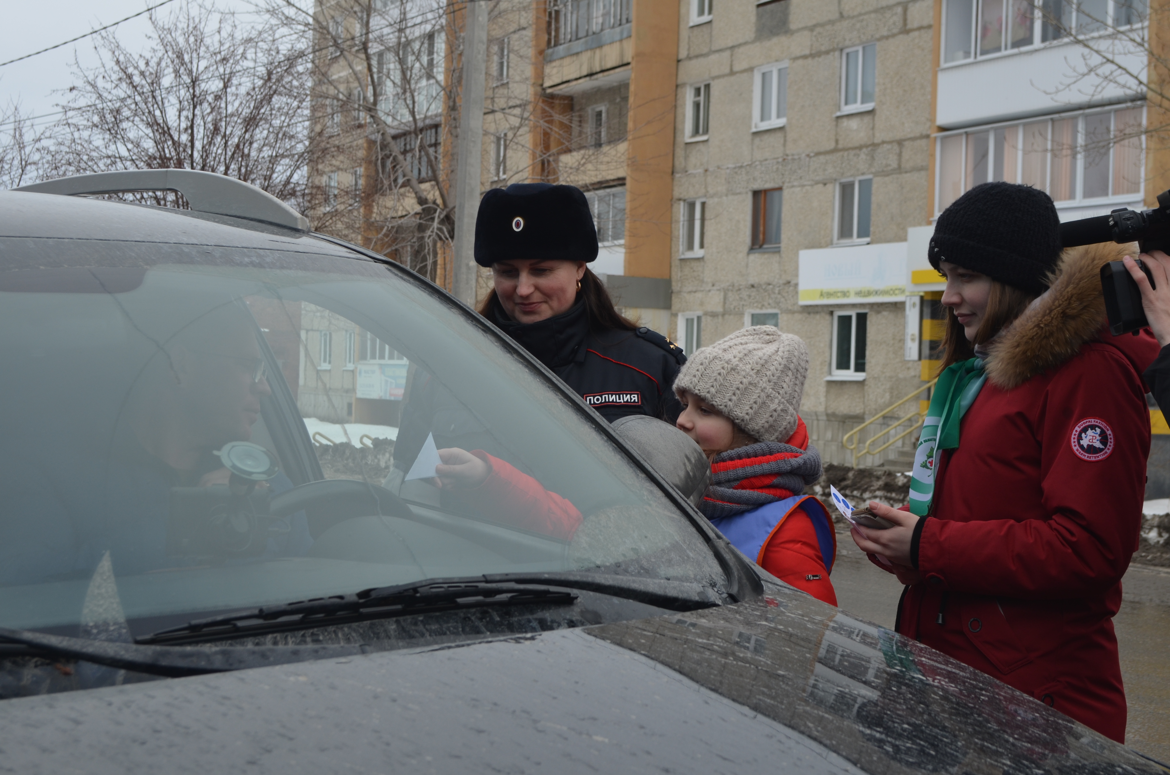 В преддверии Дня Защитника отечества сотрудницы Ирбитского ГИБДД вышли на дорогу, чтобы поздравить с наступающим праздником мужчин-водителей. Также к данной акции присоединились депутат Ирбитской городской думы Юлия Шадрина, член общественного совета при МО МВД России «Ирбитский» Юлия Окулова, девушки-студентки медицинского колледжа и отряд Юных инспекторов дорожного движения школы № 9 г. Ирбита.